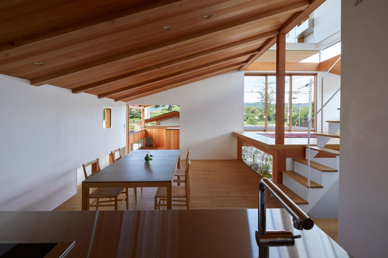 因此,建筑师希望找到一种与这些相叠屋顶景观有所联系并强调放大的设计方式;并非是一个大型屋顶之下的相叠体块,而是许多小型屋顶的集合。建筑师借由几片屋顶的分割作用,将因土地使用率高而不断增长的住宅体量变得松散,使之能融入当地城镇。同时,在每片屋顶之下,建筑师还营造了一个独特空间,使得它们之间的关系也能相应浮现。