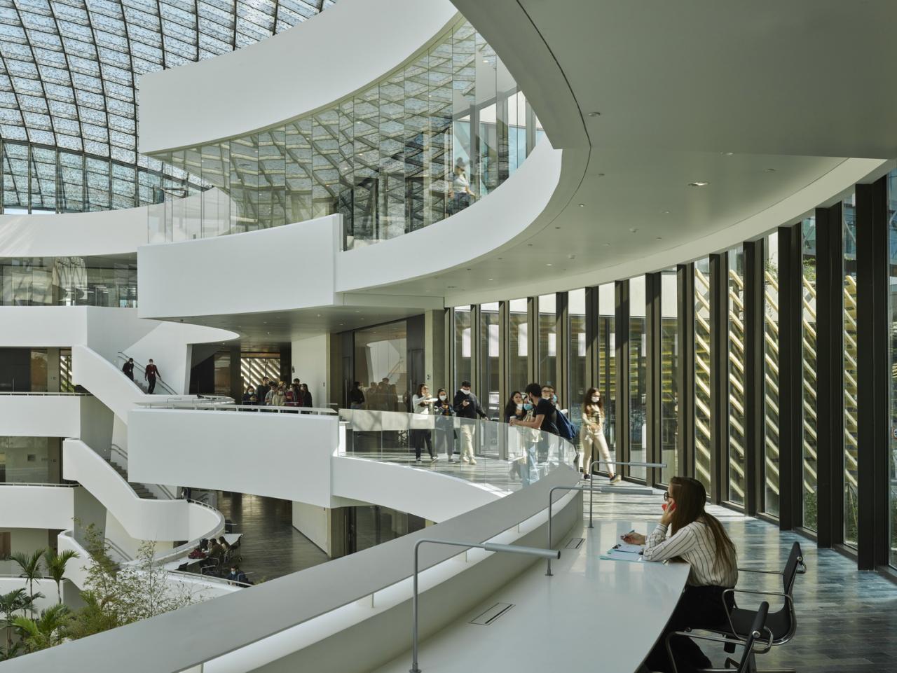 作为教育研究中心学习、协作与社群交流的核心空间,中庭花园采用了复杂的环境控制系统来维持舒适健康的环境,实现可持续发展的目标。