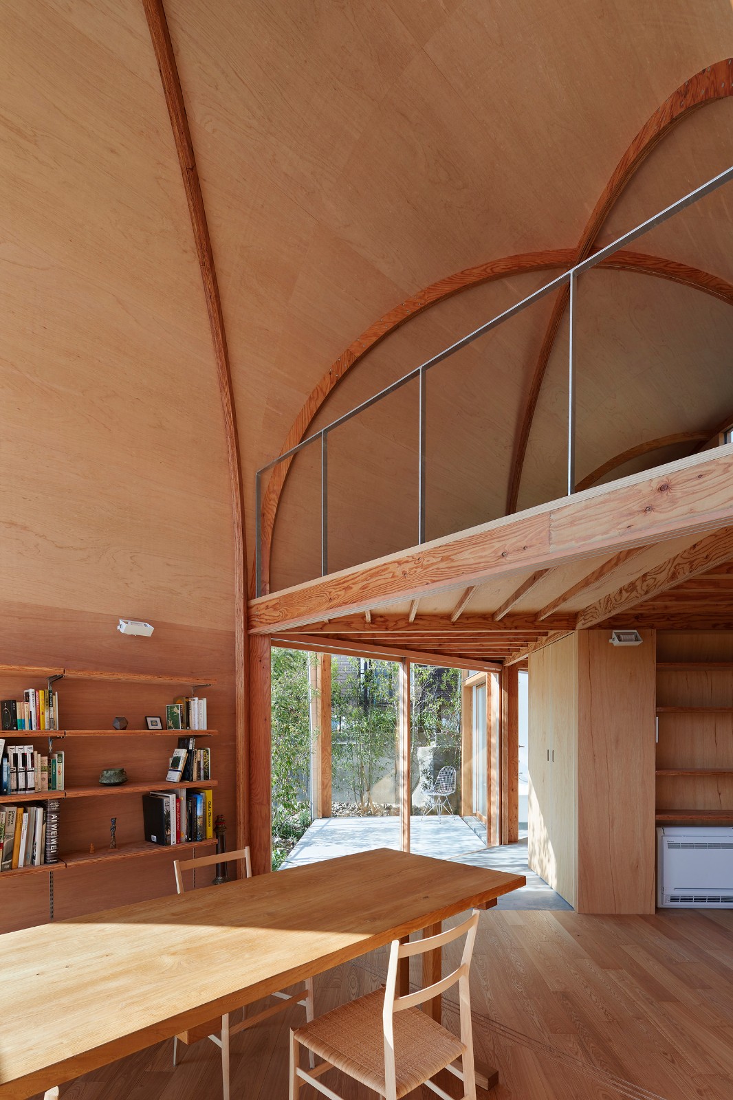 当建筑师进行场地道路查看时,他们发现仅有一条约 2 米宽的狭窄道路可以通往场地。这条道路蜿蜒曲折,不适合用于运输建筑材料。因此,建筑师首先考虑了一种可以手动运输和组装的建造方法:建筑以“拱”作为可拆分的基本模块,以此通过组合一个个小模块以构建大跨度的空间。处在因日本易地震而盛行的木构建筑文化中,建筑师也希望通过甲阳园之家的设计以探索木制模块组装是否可以替代或转换为砖石架构。