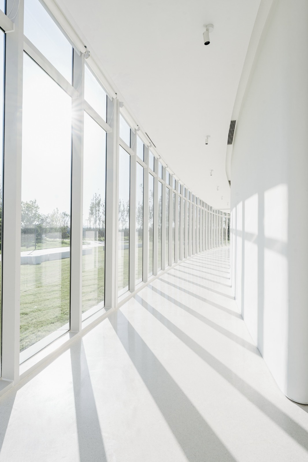 独白美术馆是个复合功能的场所。可以让不同人同时在里面的不同空间却可以一个人以一种艺术方式独处。平面形式复杂并且不规则,在结构设计上不利抗震。不过将美术馆拆分来看,除艺术长廊平面为弯曲的带状异形外,矩形舞蹈室、圆形瑜伽室、椭圆形小剧场都是抗震性能优异的对称规则的布局。老胡就此设置了三道抗震缝将其分成四个独立的结构单元。超长结构的伸缩变形得到了释放,减小了温度应力,避免气温变化引起出现结构裂缝。不得不接受抗震缝的我只好仔细设计节点,掩盖它在屋顶,立面以及室内的存在,保证我的画卷在视觉上是连续不断的。