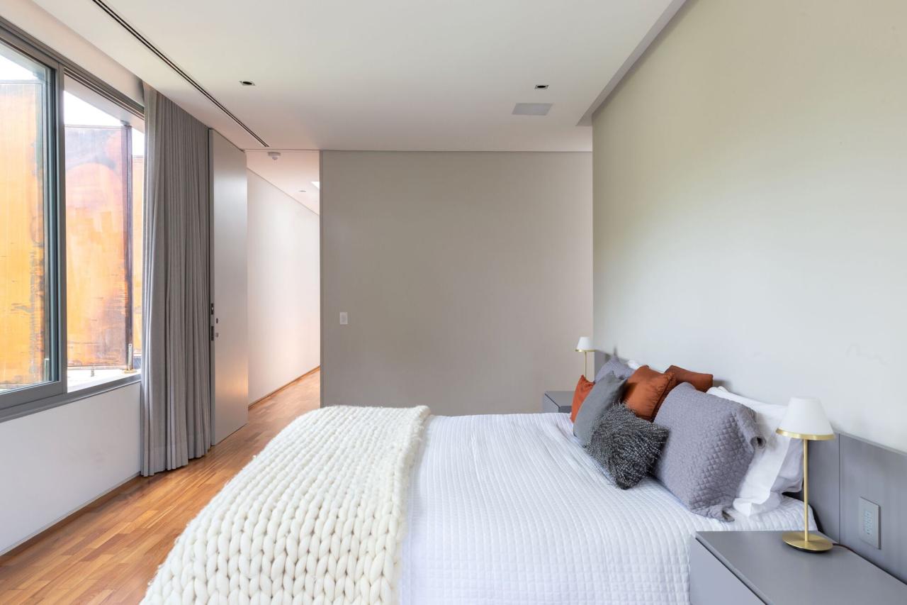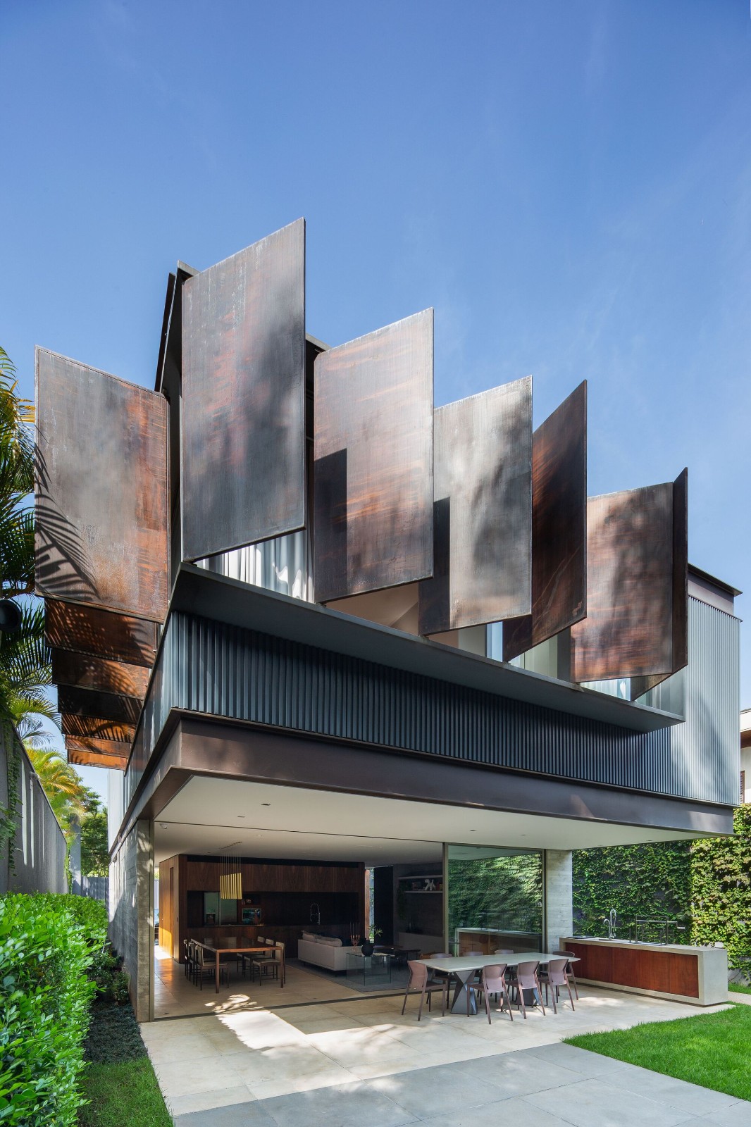 从公共街道上看,Bento 住宅显得羞涩而谨慎。上层的折叠金属板和大门形成了视觉屏障,当踏进住宅后,游客可以感知底层空间与花园融为一体,如同圣保罗城市肌理中的一片绿洲。