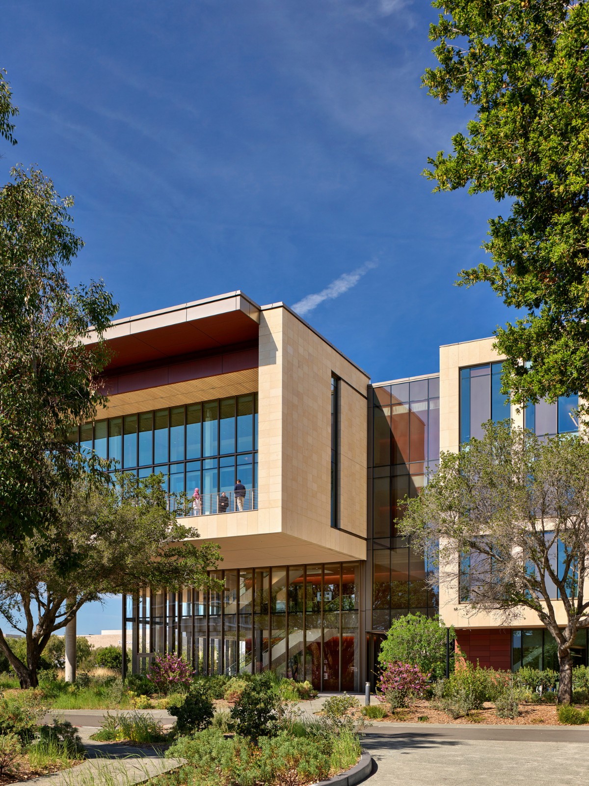 三层楼高的金属百叶窗板幕墙和西立面的陶瓷熔块图案最大限度地减少了眩光,同时优化了室内热舒适度和日光照射。该建筑的年能源使用强度为 15.9 kBtu/sf/yr(包括可再生能源),比基准值节省了 85%的能源。设计团队创建了亲生物设计指南。加州栎启发了建筑的设计,与加州本土树木一样,能够在一个空间内容纳多个环境。它的叶子阻挡阳光直射,同时允许过滤后的光线和微风透过,在树冠下创造了一个凉爽空气的微生境。其结构强化了分层效果,创造了空间感和运动感。