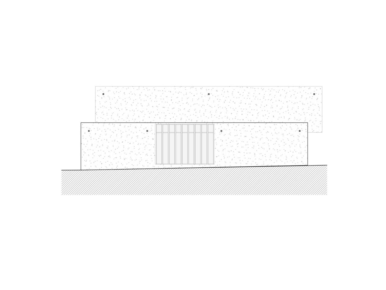 内露台上方的二楼是悬臂式的,因为一楼仅由大厅空间占据。二楼设计有两间带独立浴室和步入式衣橱的豪华卧室。房子二楼的卧室窗户用独特的垂直混凝土板条遮蔽。这样的元素不仅打破了这个具有雕塑感的建筑,还缩小了它的尺度,并使立面变得活跃而柔和。在建筑物的屋顶上设计由一个太阳能发电装置。