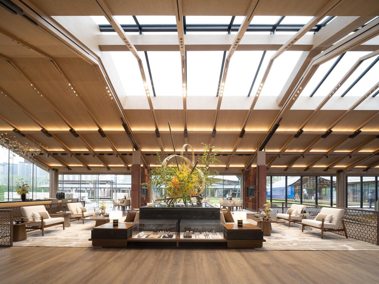 室内空间延续建筑整体的质感,以木色为主色调,点缀以深灰色的金属勾线,塑造雅致的文化氛围。