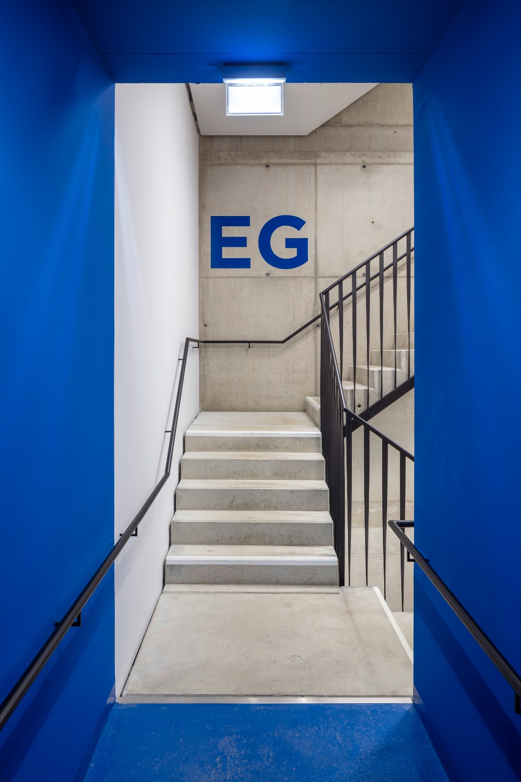 墨卡托一号如入口大厅、侯梯厅、楼梯间等公众可达室内空间皆符合德国最大都市区“鲁尔河畔(Ruhr)”“粗与犷”的信条,此外建筑还使用了如混凝土、钢材、玻璃、石材、木材及油漆等纯粹、直接、过时时也不失优雅的材料。