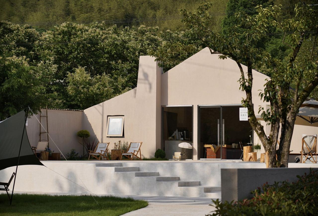 等风来咖啡店位于浙江安吉小杭坑露营地附近。为了响应“乡村振兴”的战略,夏阳村村委会将景区开发为露营基地,大力发展旅游业,吸引了众多露营爱好者前来体验。在露营基地初具规模的前提下,村委会鼓励村民将自家自建房或闲置库房改造为营地的配套服务设施,以完善营地的接待功能。