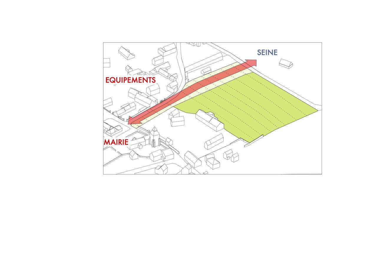 场地上的房屋和农场建筑的形态被重新诠释,生成了大型的当代 Longères(longère是一种狭长的住宅,沿着其屋顶的屋脊轴线延伸,通常是农民和工匠居住的地方,是法国西北部布列塔尼和诺曼底地区的典型住宅形式)。场地的地理环境决定了工程的植入方式,房屋根据土地的轮廓插入,同时考虑到保护自然土壤。这些准则划定了操场的范围,加入了果园,并成为收集整个场地雨水的山谷,为下面的一个景观盆地提供水源。