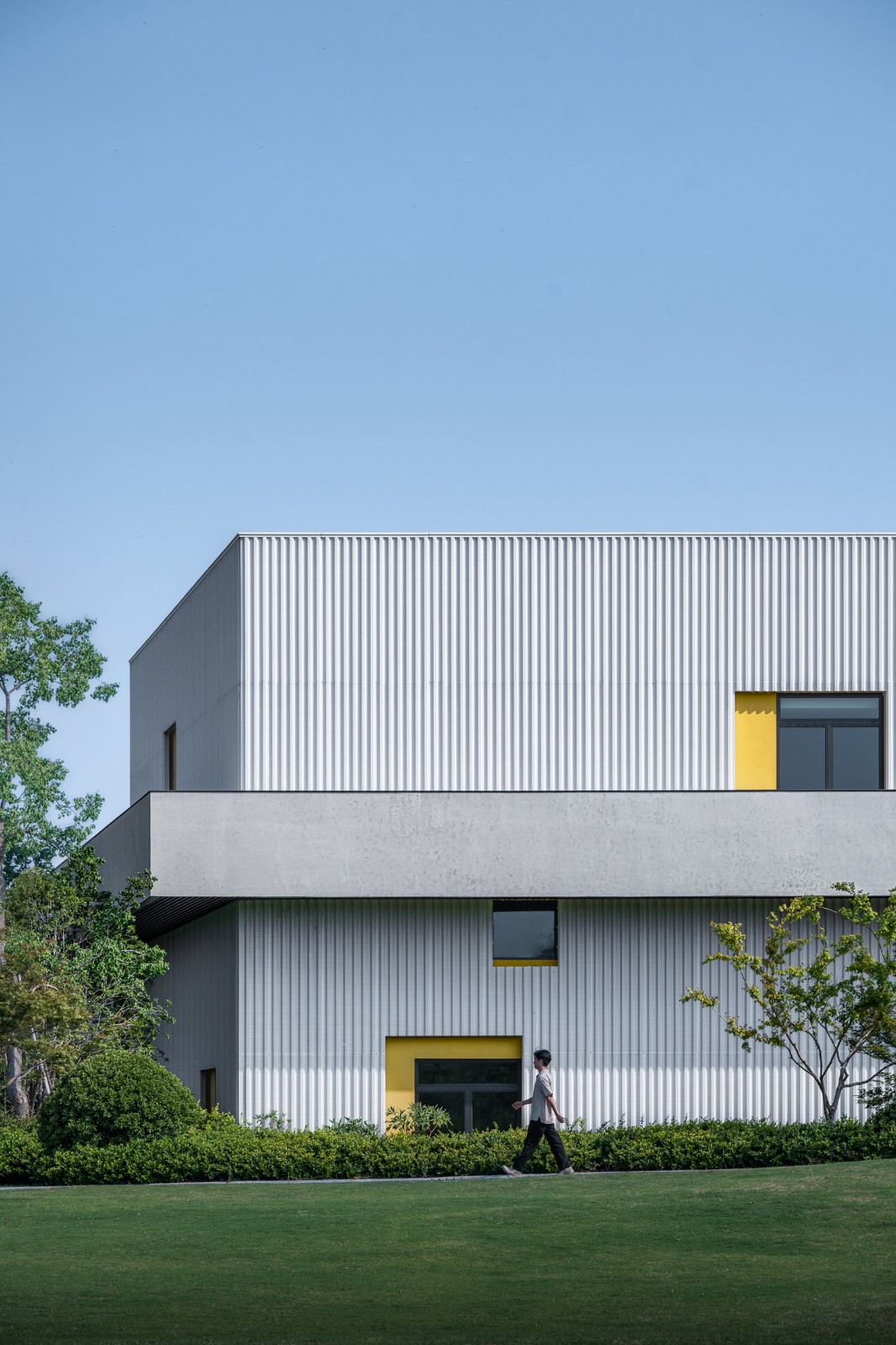 面对极限的用地边界和严苛的成本控制,我们以理性的逻辑分析回应并解决问题,集约化组织功能空间,运用成熟的工业化材料和色彩组合将体积表皮化,自然生成了一组高低叠合的基本建筑空间。——孟凡浩