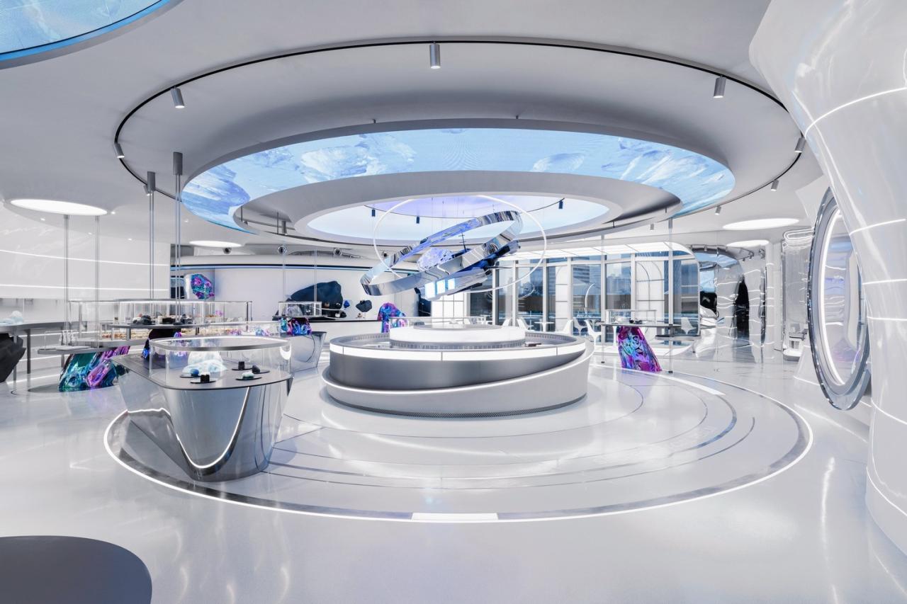 从心理入舱到身在异界,中央陨石坑是链接平行宇宙和地球的唯一“黑洞”,是超时空旅行中牵引力最大的场域。在这里,太过庞大而不可感的宇宙万物缩小至人可以感知的尺度,时空旅客站在上帝视角凝视平行宇宙。陨石坑能够传送飞行器和陨石,补给来自异次元的能量。展示异物陨石入侵画面的环形LED屏幕,可编程灯光渐变动态,失重悬浮的宇宙飞船,都是外界环境中不常见的元素,意图明确地指向一场太空冒险。