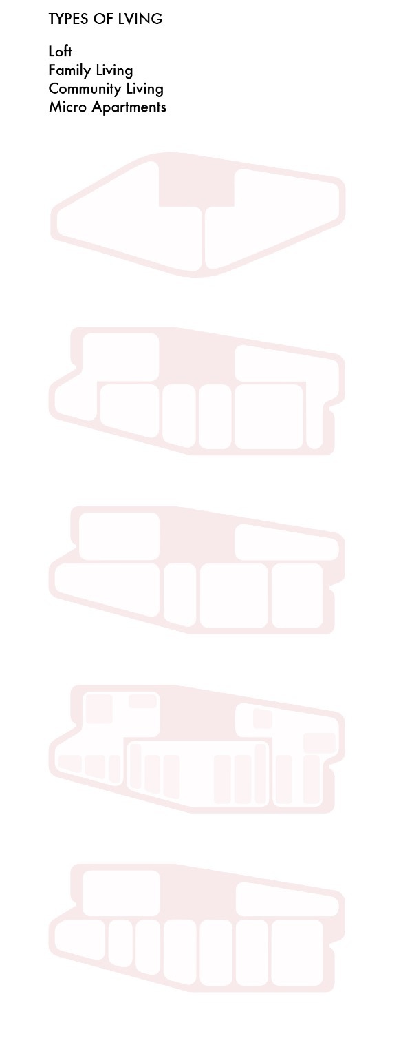 “拉链”大楼在首六层空间设置了团体医疗、专家及理疗师所需的空间,由此让这一区域可以与其他已有的医院设施协同,创造一个超脱于当地区域的一流医疗保健设施。在此之上,大楼的其余十四层楼则包含了容纳各种住宅形式的公寓区,因此这一区域拥有更透明、光线更充足的生活空间,同时每个住宅单元还带有宽敞的阳台、露台、凉廊及屋顶花园。