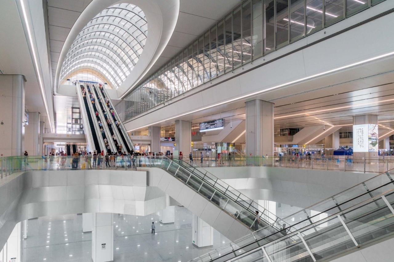 由程泰宁院士领衔,中铁四院与筑境设计联合体设计的杭州西站枢纽综合体于2022年9月22日正式通车。作为基于中国国情的站城融合理念的最新设计实践,西站枢纽综合体通过多维一体的交通组织,理性充分的综合开发,打造既有江南气质又具未来感的创新站城空间。杭州西站站房建筑面积约10万平方米,总规模为11台20线,采用“上进下出”模式,进站旅客以高架候车室候车为主,辅以线下快速进站厅。设计团队以“云”为设计理念,提出“云谷”、“云厅”、“云门”等概念作为“云”意向的新呈现,既呼应了杭州“三面云山,一江抱城”的独特山水格局,又象征了城西科创大走廊的科技精神。此外,中国首个新建高铁正线上方雨棚上盖开发项目也在西站枢纽诞生,为中国高铁建设提供了土地集约利用的“杭州”模式。