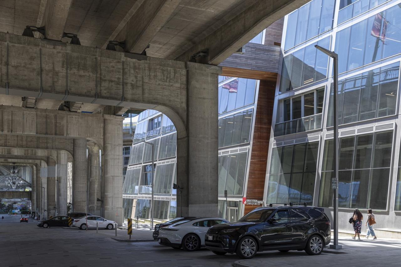 高 220 米的 Telus Sky 塔楼和高 149 米的温哥华之家容纳了混合用途的办公室和住宅空间,并于各自的平台与自行车道和人行道相连。此外,两座建筑物都拥有最高水平的能源和环境设计。温哥华之家是该市第一座 LEED 白金级认证建筑,而卡尔加里的 Telus Sky 塔楼则以 70725 平方米的建筑面积成为了北美最大LEED白金级认证建筑。