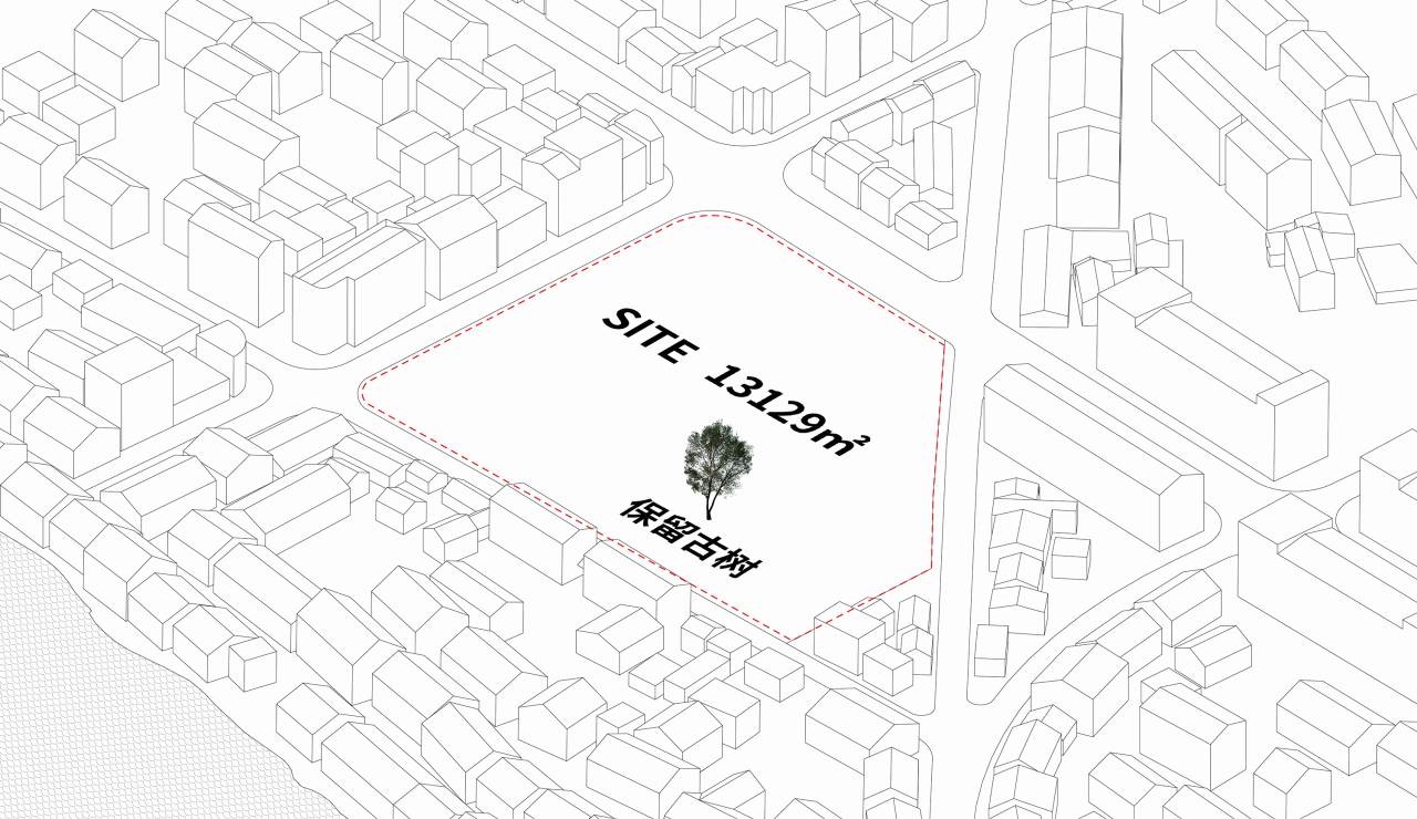 项目占地13129.92㎡,容积率1.05,1.3万方的地上空间体量肩负着小镇新地标的重任,与景区高密度的小尺度空间形成反差。在此矛盾下,我们需要在——建造艺术地标,为小镇提升知名度;同时在近人尺度,以日常化、烟火气的平等姿态融入小镇——这两者之间做出平衡。