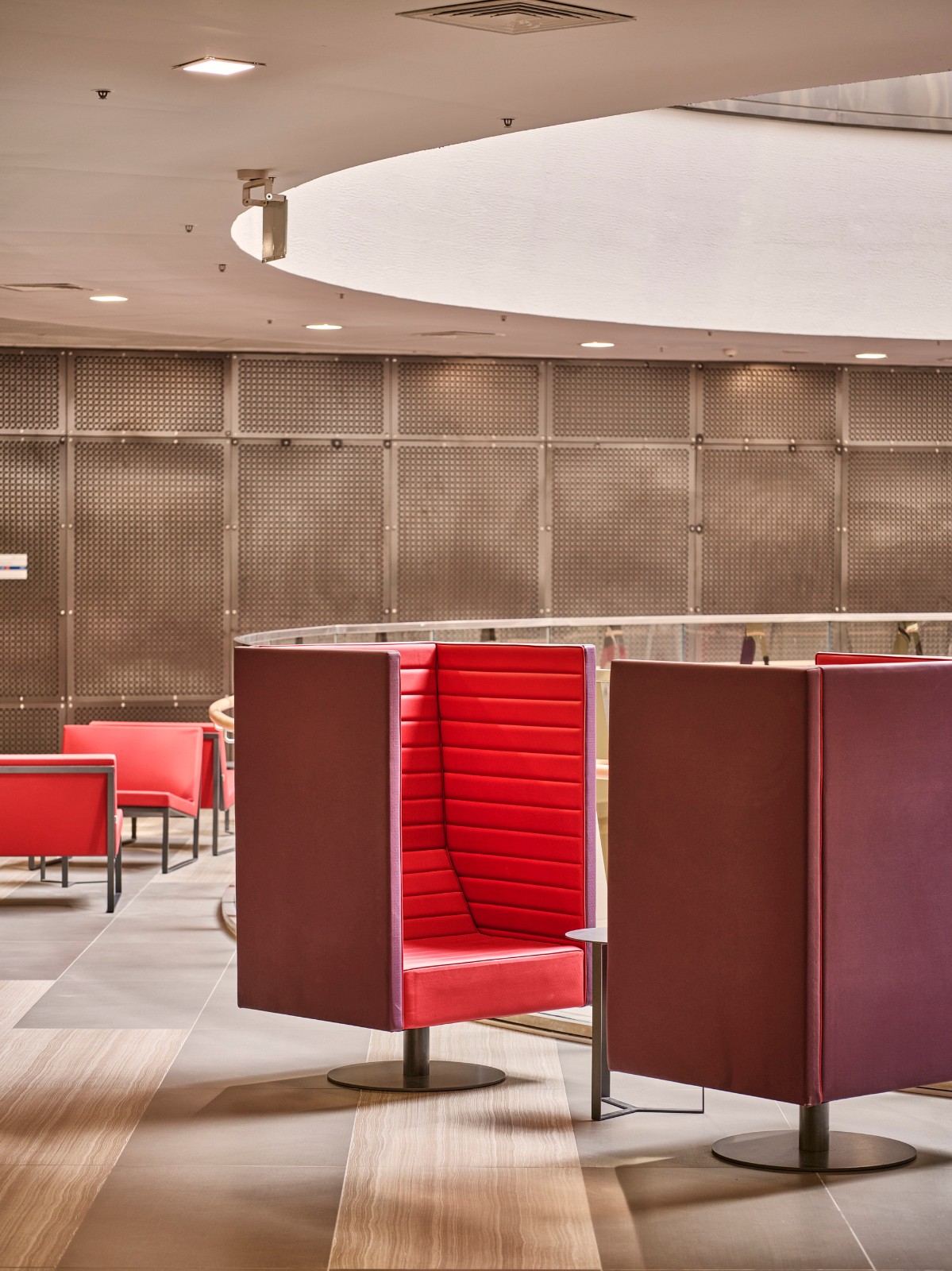 学院的流通沿着中庭两个南北平行的建筑体量进行规划。这些流线是学院知识和教学核心,与贯穿校园、连接各学院的东西向长廊相交。这些交汇点构成了生命科学学院内部特征的枢纽。学生生活活动围绕这些节点进行,包括餐饮服务、零售、学生俱乐部、休息室、展览厅与大型讲座设施。