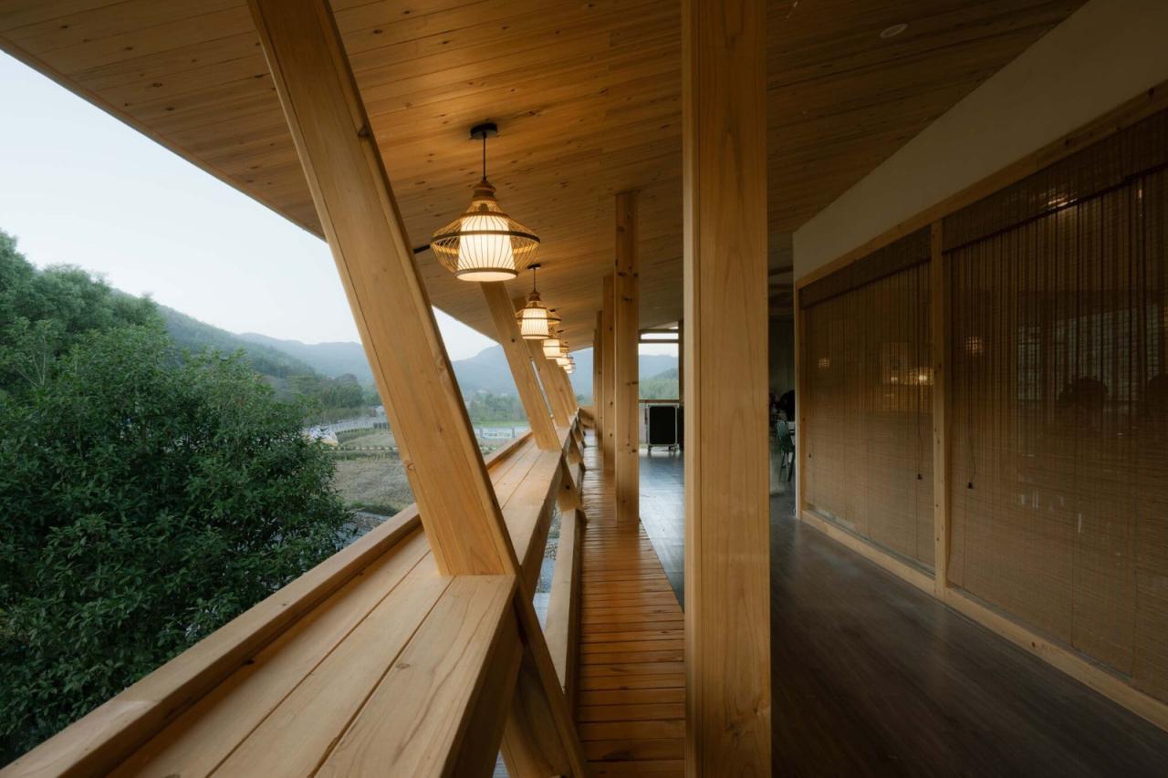 驿站与村对视这种被田野包围,紧挨村落,又交通便利的环境条件,使得改造后的小小瑶理驿站成为了周边市民走走出城镇,走进乡村,摆脱纷繁,体验宁静的最佳去处。设计在二层加强了建筑的横向走势,通过两个楼梯率先链接的灰空间,再进入室内,使得空间流线异常亲和,呈现开放有趣的结构。同时,建筑的横向长窗,以及刻意拉伸压低的屋檐,让建筑的对外视线始终保持一种宽幅扁平状,这使得村落的风景犹如中国山水画横轴一般,充满了叙事与流动性。