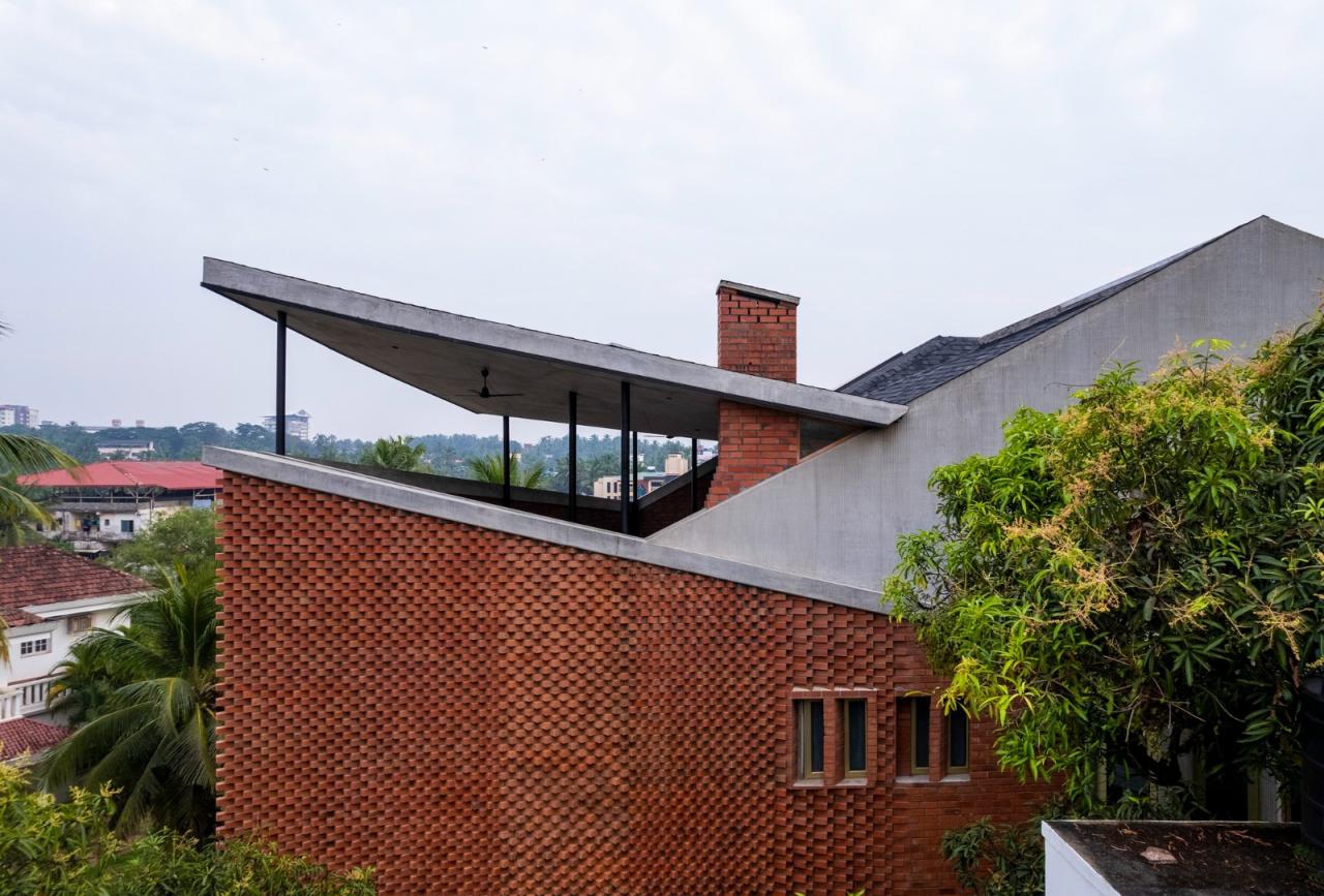 这座砖砌住宅位于南部卡纳塔克邦(Karnataka)地区的沿海城镇芒格洛尔(Mangalore)。这座城市融合着许多文化,并以其独特的风景和散落在老城区的遗迹而闻名。建筑场地位于密集的城市蔓延区。搬到沙特后,客户的愿望是在他的祖籍地附近拥有一个家庭住宅。这座房子的设计理念映射了他的成长记忆中的旧砖厂,和那椰子树后若影若现的烟囱。红色氧化铁地板和石灰粉饰的墙面使房子保持清爽。总而言之,这座家庭住宅旨在唤起人们对过去的回忆,同时保持设计的独特性和美学现代感。芒格洛尔属热带气候,全年大部分时间降雨量从大到中等,夏季炎热。设计师们采用了被动的设计策略和规划原则,以确保不间断的交叉通风。