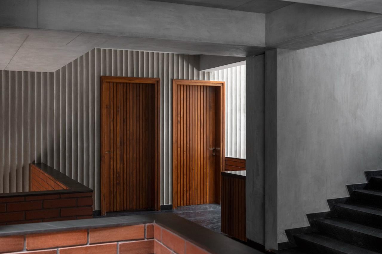 建筑中不同的中庭拥有不同的体积和楼层,其灵感一部分来源于“ThottiMane”(四合院)。通过一个向内的平面,天空的自然光可以透过砖屏过滤照射进中庭,甚至可以感到徐徐微风。交错排列的中庭空间还允许所有用户在私人区域之外享受扩展的庭院。