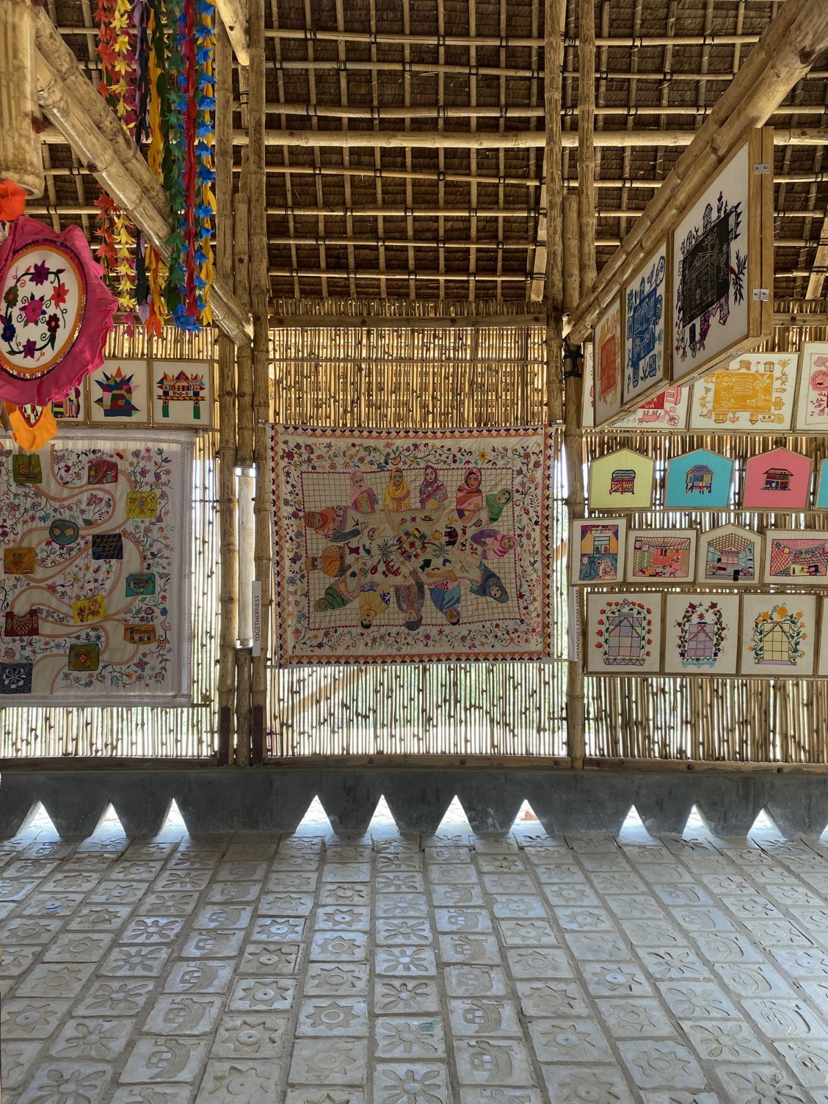 在建造过程中,拥有多年专业知识的年迈工匠向年轻一代的人们教授他们记忆中的技术,年轻的罗兴亚人则在此基础上探索新的可能性,亲手构筑文化中心的每一处空间。因此,罗兴亚文化记忆中心也是一个建立在建筑师与当地人们间的各种设计会议及实践研讨的成果。例如,建筑师希望工匠通过设计一个小窗口,以寄托他们最爱的记忆或故事。因此,文化中心中央挂有属于他们的房屋、钓鱼、大象、鸟类、稻田等各种珍贵回忆的物件,由此反映了罗兴亚人的记忆和集体感。此外,罗兴亚人在加工天然材料方面拥有丰富的技能,因此建筑师在施工过程中谨慎地选择了适当的材料,以让工匠们可以使用自己熟悉的技术。并且,建筑师与工匠在项目开始时,就已经确定用本地材料“从零开始”,并在施工过程中鼓励所有人自由地思考、讨论、一点点地手工搭建文化中心,以此保证了建筑空间的包容性及愉悦感,从而也让使用者们可以保持精神健康。