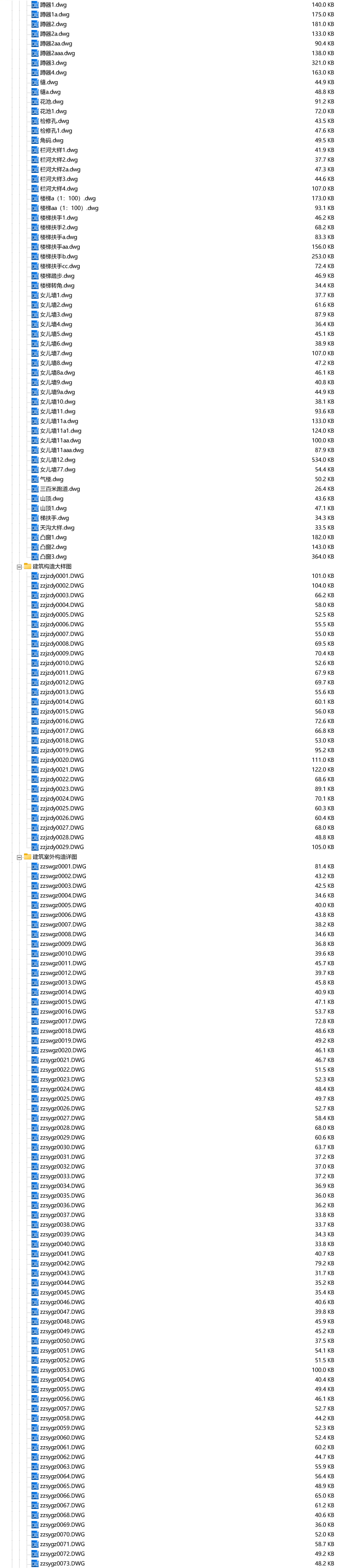 37套建筑详图,共1500个dwg文件,各大设计院建筑节点图集CAD版本,覆盖变形缝大样、地下防水详图、楼梯电梯详图、基础承台大样、景观大样、人防详图、室外工程详图、卫生间大样、屋面大样、吊挂节点、石材节点、消火栓大样、雨棚大样以及中式建筑详图节点等。总共265M,一千多个文件,分类明确方便调用。