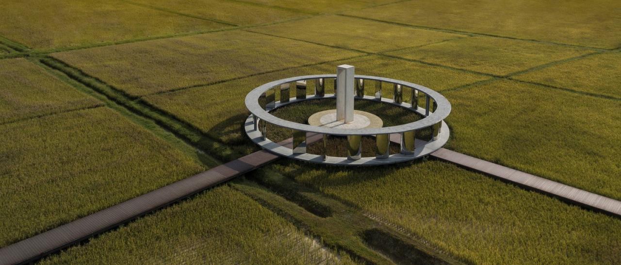 直径24米的环形体量,既是回廊又似祭坛,亦如同天外降临之物,漂浮于田野之上。简洁的形态,包含了穿越古今多层意味的解读。也正因如此,使它具有似曾相识、似是而非的 “未知”神秘感。