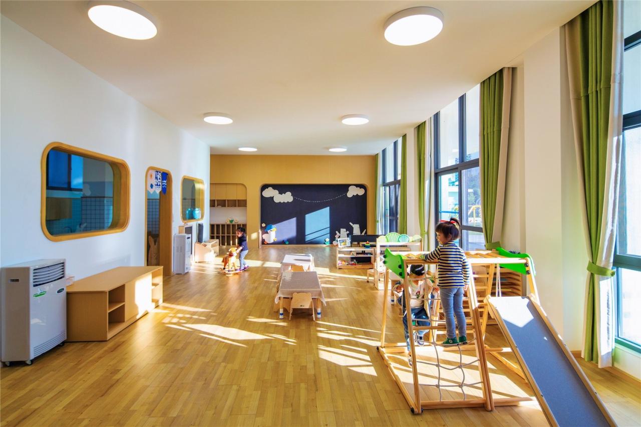 设计风格依旧延续以纯净素雅的白色、木色为主色调,以留白去承载老师们教学过程中的装点。在细节处理上,选择对幼儿友好触感的建材,家具根据各年龄层儿童的身高订制尺寸,空间内所有的电源插座与开关的设计也都定位在儿童接触不到的高度。