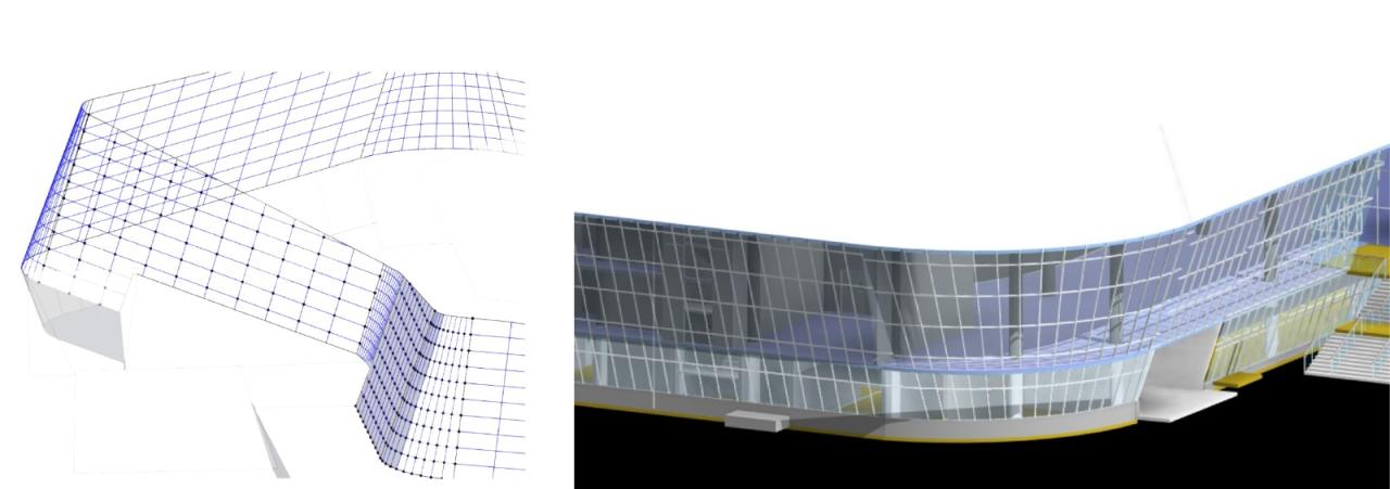△汽博园交易中心运用BIM参数化建模辅助铝板幕墙进行曲面平滑度分析及排布模拟