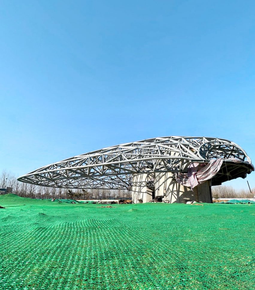 这座建筑的图片显示,这座2500平方米的建筑呈球状,正开始用白色玻璃覆盖其悬挑屋顶。该文化中心位于北京以东160英里的港口城市秦皇岛,将容纳一个大厅、一个画廊和一个小剧院。