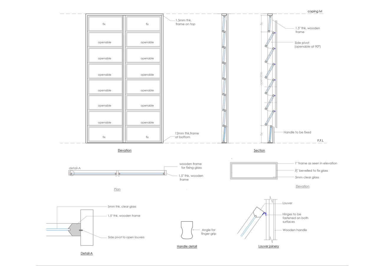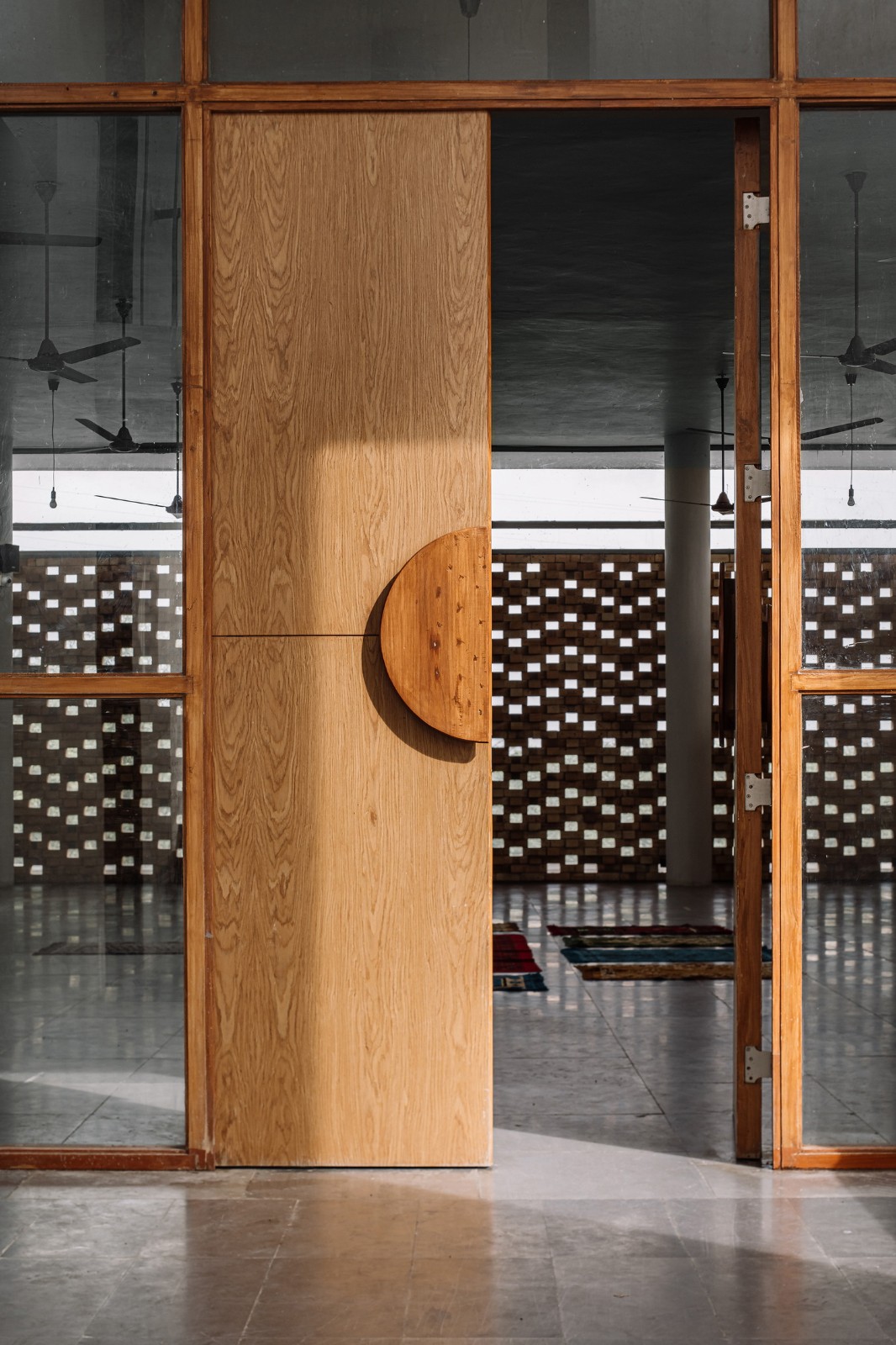裸露的砖块构成了大部分外立面,允许阳光穿透内部,使整个空间变得神圣,营造出一种“敬畏感”。百叶玻璃与门和外墙面融为一体,有助于采光和通风。Ibadat Khana 上侧的开口进一步改善了环境并且照亮了空间。