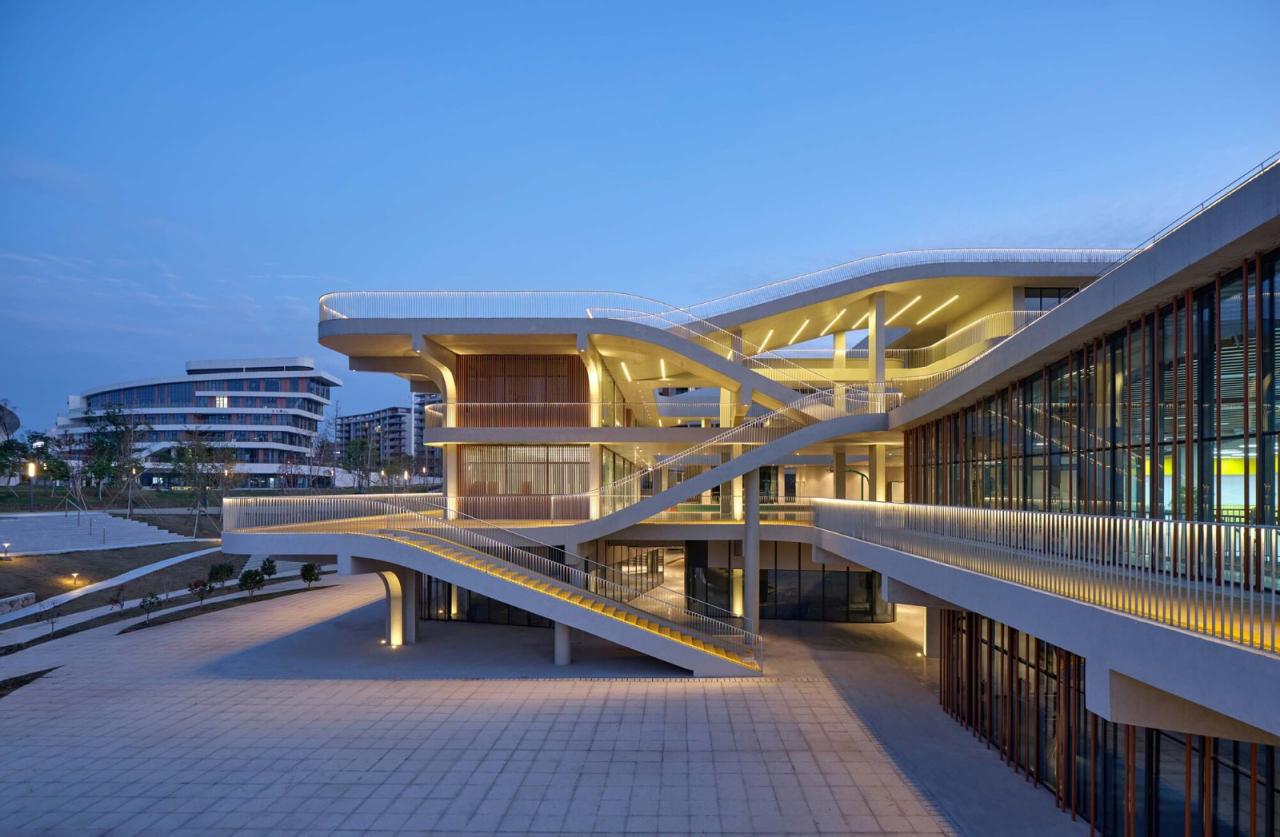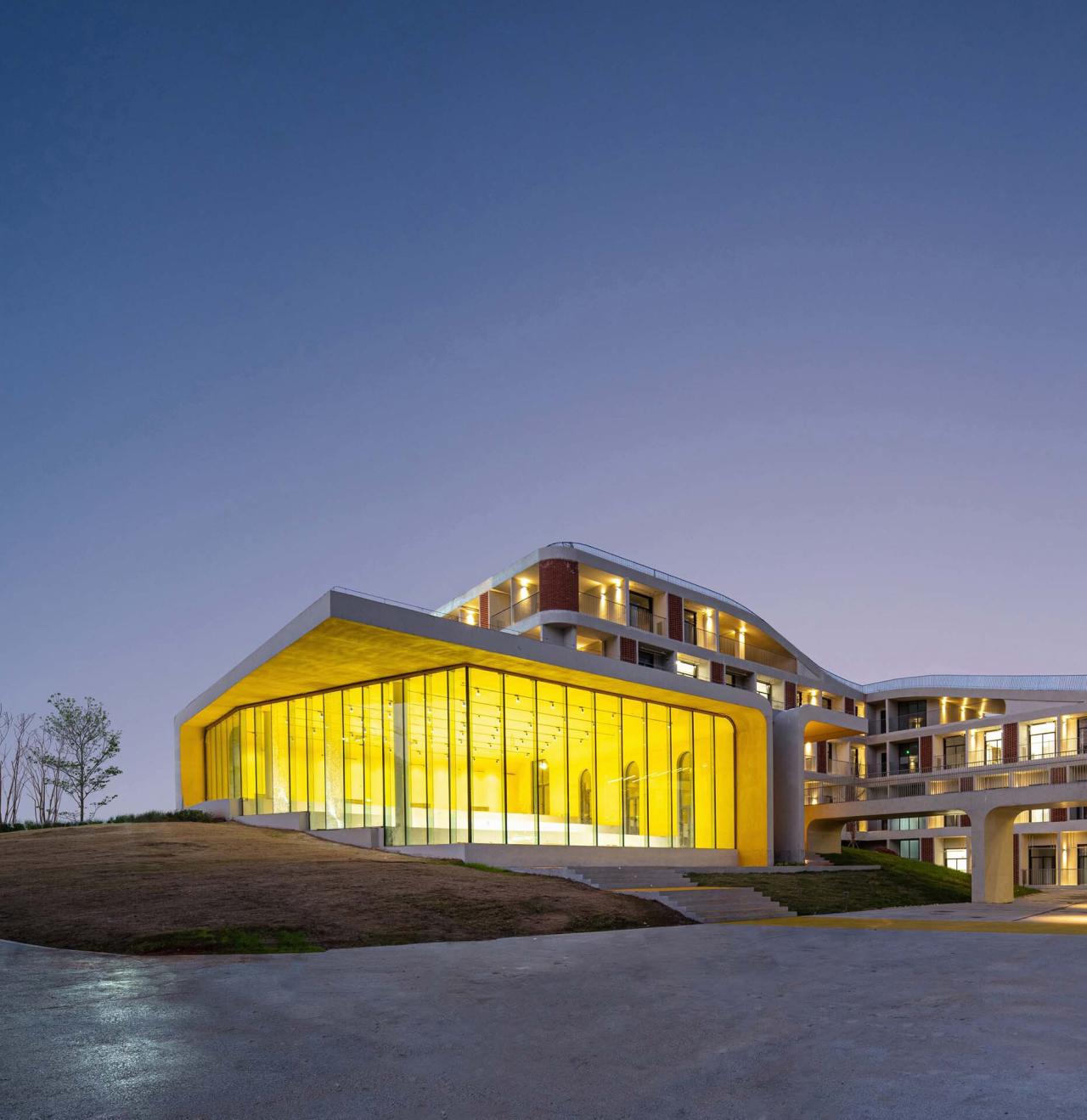 设计背景:综合体+微地形研究院选址于衢州高铁新城,因场地局限户外体育设施不足,周边也尚未有成熟的服务配套。作为一期重要工程,2万㎡的生活中心将在很长一段时间内为自给自足的研究院提供住宿、社交、活动、餐饮、学习和娱乐等多种功能,是名副其实的综合体。