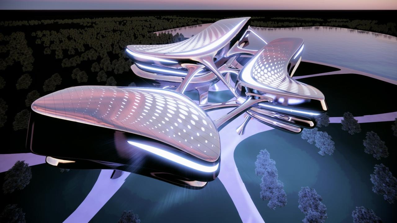 CAA 建筑事务所的 META CAALAB 团队基于对戏剧的古典性与先锋性的双向解读,将二者解构, 在元宇宙世界中创建了一个充满未来主义的科技感、超现实的戏剧之城——“酒神剧场”。