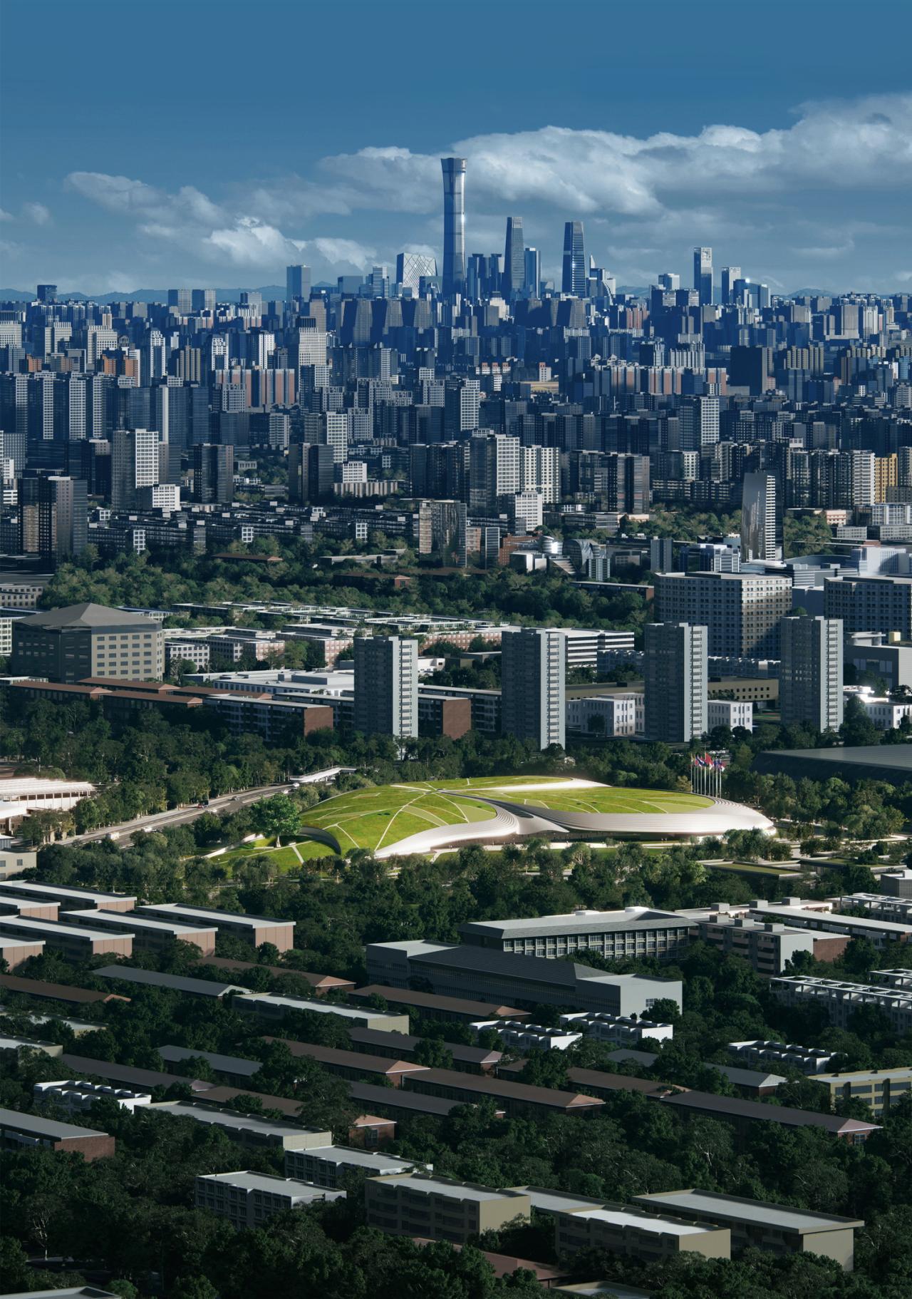 三山五园是近代中国将自然与营造和合至极高格局的历史及文化高地,并从近代至今一直滋润和影响着北京。永久会址希望从多维度树立其在规划中的点睛作用:科技层面,以开放、启发想象力的空间氛围展现会址所承载的创新愿景;文化层面,以谦逊的姿态与场地独特的历史及自然背景呼应;绿色层面,成为向城市、社区开放,人人乐至的新城市公共空间。