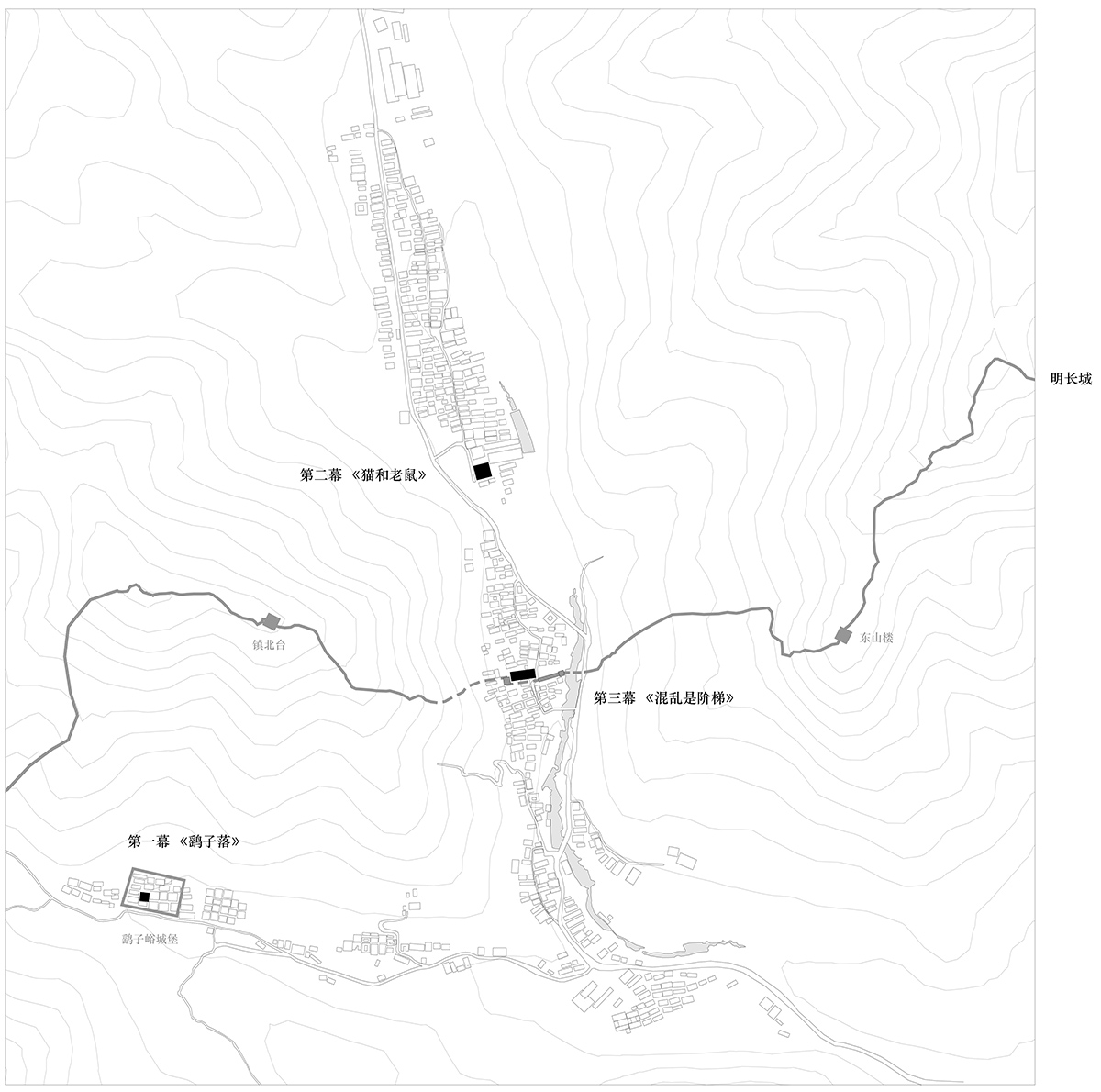 ▲ 三个院落与长城的位置关系 © 大料建筑