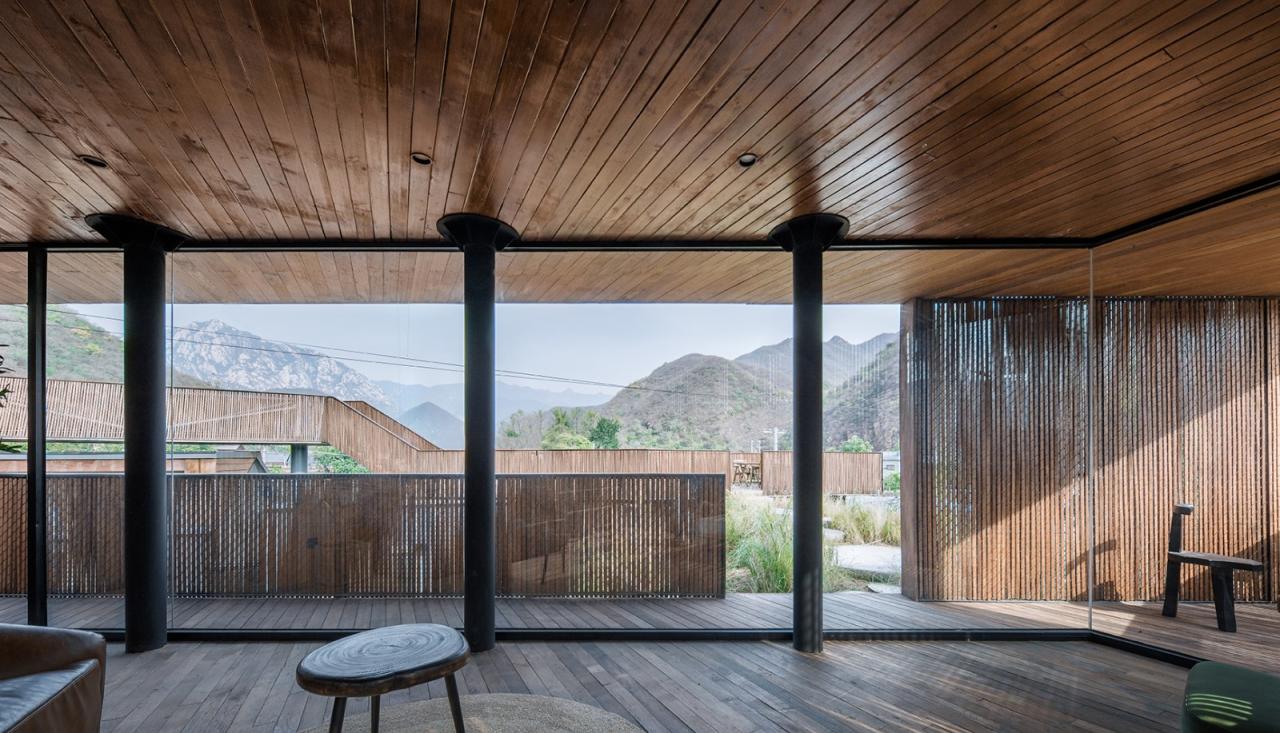 错觉的连接和现实的割裂也便在此集中突显。古道中原有的雄关被半透的三角木城所替,道边的残墙与退留的空场相遇,成群鹞鹰的监视下,村民朴素的生活场景似乎便是小姐姐拍摄的理想背景,而下沉餐厅两边的巨大窗口,透露着建筑师连接内外公共性的私心,但现实中,这也不过成了日子并不相容的游客与居民间那块透明的遮羞布,倒是每天追寻着太阳而落脚休息的大娘,给了路边的石凳一点真实的温度。