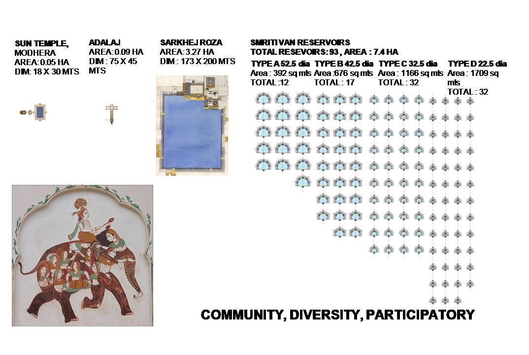 卡奇县对大自然的变幻莫测已习以为常,其根源至少可以追溯到印度河流域/哈拉帕文明(Harappan civilization)。在4500 多年的历史期间里,它遭受过飓风、干旱等无数自然灾害。而这些造就了卡奇演化出一种具有复原力的韧性文化。水在当地仍然是最稀缺的自然资源,因此,该地区的生态、经济、文化、社会结构、节日和生存斗争都围绕着水展开。时任古吉拉特邦首席部长、现任总理纳伦德·莫迪 (Narender Modi) 给出了简单而深刻的准确指示:“为每个受害者种一棵树”。 因为一棵树象征着重生、复苏和希望,是生命旅程的轮回。还有什么比通过这种象征性的再生行动更好地纪念人类生命的逝去呢? 植树也暗示着造林,森林还象征着由各种事物组成的集体。