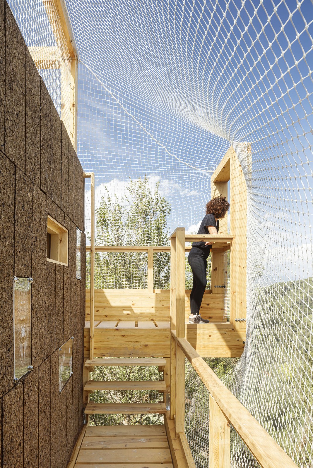 研究森林冠层的科学研究装置。这座观测站的设计灵感来自美国生物学家 Margaret D. Lowman 的杰出作品,她被认为是森林冠层生态学的先驱。在过去 30 年里,她一直在设计气象观测气球和冠层步道,以帮助探索和解开世界森林的奥秘,尤其是关乎昆虫多样性和生态系统健康的议题。