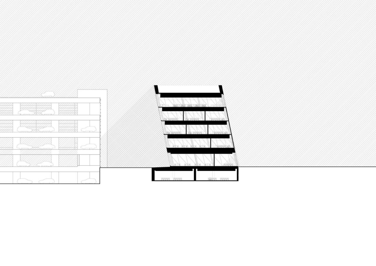 设计手法以严格的经济手段与周围的建筑结构相异。为实现高能效和居住舒适的目标,建筑师需要将与扭曲造型相关的预算溢价降至最低,继而采用了严格的几何形状,以优化现成标准组件的重复使用。相应地,这座建筑物的动态形式最终是通过简单的几何逻辑生成的,即矩形楼板围绕一个共同质心旋转而成。