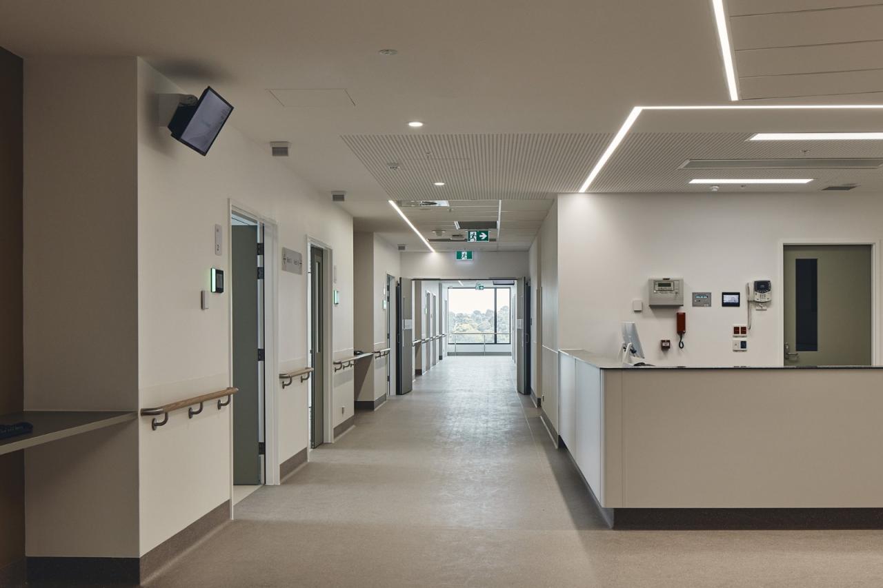 医院的公共空间从庭院的圆形向外发散出去,与其他地方的直线规划形成对比。 公共和临床循环走廊构成了庭院的框架景观,以及邻近的大学运动场和远处的丹德农山脉,增强了与自然和日光的内在联系。 维多利亚心脏专科医院吸取了其他主要国际心脏病医院的经验教训,突破了传统医院设计的界限。 设计团队的主要成员与莫纳什健康一起访问了新加坡、加拿大、美国和英国的心脏病医院,以深入了解这些设施的成功和缺点。