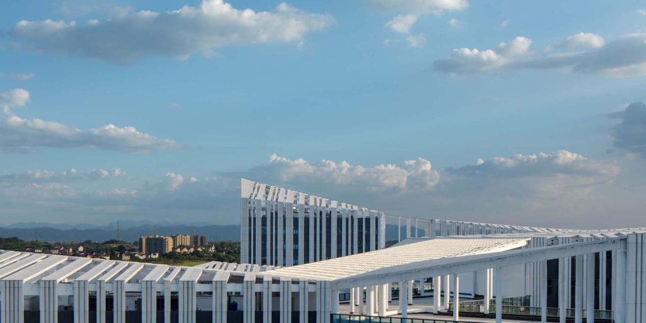 浙大衢州“两院”(浙江大学衢州研究院与工程师学院衢州分院)项目位于浙江省衢州市柯城区。法国AS建筑工作室于2019年在国际竞赛中获胜,负责项目的设计与把控。项目已于2022年6月18日正式启用。工作室在自然水岸景观与城市教育建筑群之间寻找适合场地的设计与规划, 校园聚落形态的无界布局,是希望校园与周边产生更丰富的碰撞。对于教育建筑的理念,犹如种下一棵树,予以适合的温度、水分、空气,得到足够的能量和空间之后,向下扎根向上生长。