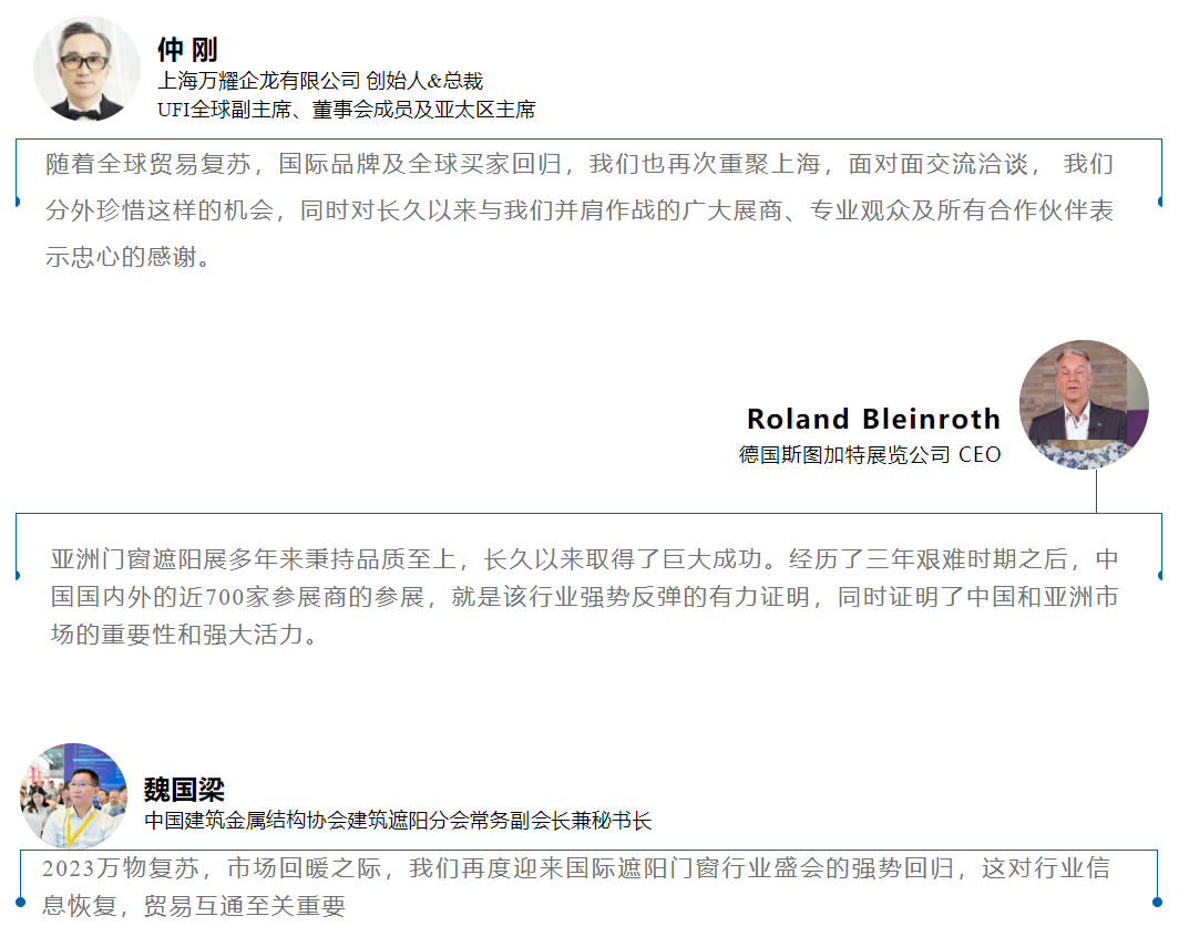 近期,中央定调优化房地产政策,释放建装行业利好信号。18年来,R+T Asia始终肩负国内外双循环机制下对外开放,互通贸易的责任与使命。如今,R+T Asia不仅是全球门窗遮阳行业关注的年度盛会,更是携手BUILD ASIA Mega Show亚洲建筑及装饰联展,使平台不仅能满足垂直类单品内外贸双循环的经销渠道贸易需求,也能通过覆盖建筑与装饰领域全品类的同频呈现,为工程、设计、应用等终端买家提供建筑工业化、软装一体化、空间六面一体化、内装工业化等一站式的采购服务。为建装一体化的发展提供资源的整合,为推动行业高质量发展提供借鉴。