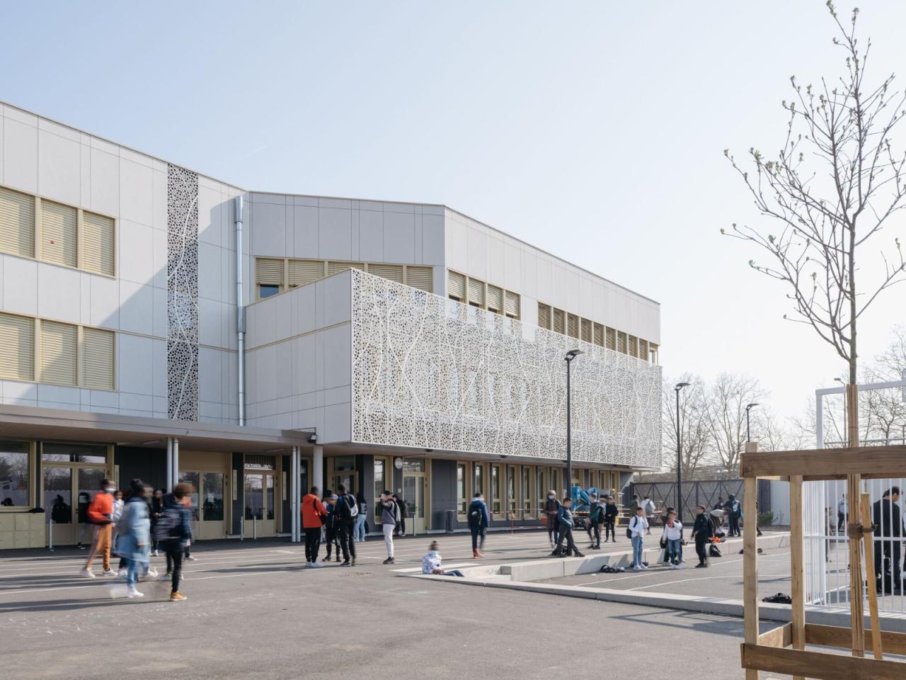 三座建筑,三种功能位于 Guy-Môquet 大道和 Rue du Colonel-Fabien 街的拐角处,该项目由三座独立的建筑组成,可以独立运作。教育楼和体育馆的主要入口位于 Mail Yvonne-Hagnauer,这是瓦伦东市政府最近在 Rue du 8-Mai-1945 和 Rue du Colonel-Fabien 之间开放的一个步行区。这个空间不受汽车交通的影响,为学生和家庭提供了一个平静和安全的环境。六个员工宿舍(双人间或三人间的T5公寓)位于该地块的北部,与附近的住宅结构相连。他们面向 Guy-Môquet 大道,允许居住者与他们的职业环境断开联系。
