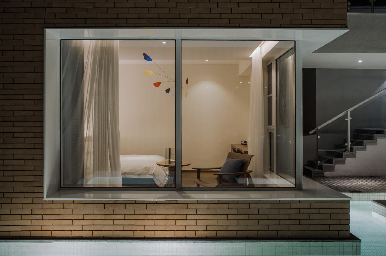 内部院落保留了传统民居的围合形制。后部客房空间为两层的建筑体量,底层和书屋环绕出了一个带浅水池的下沉式内院。同时,一层客房靠近水池的部分通过角窗与下沉庭院形成互动关系。