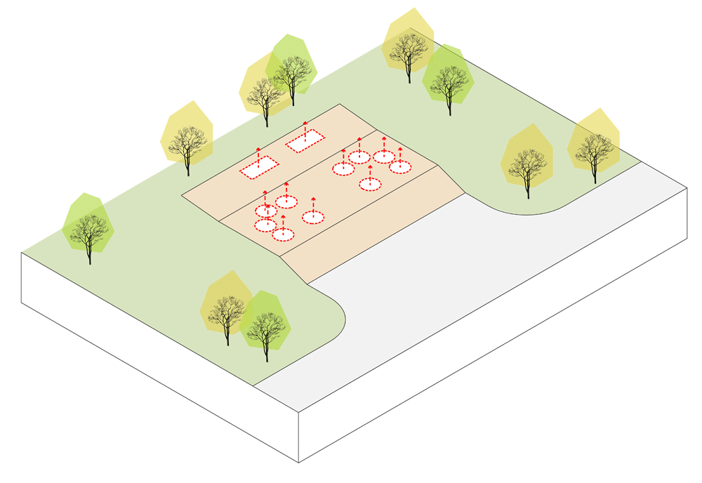 卷厕可以进一步实现其作为公共空间的属性,而非刻板印象中被人嫌弃的场所。建筑与停车场有2.2米高差,设计师通过景观草植与踏步结合的大台阶将人流引导至厕所。