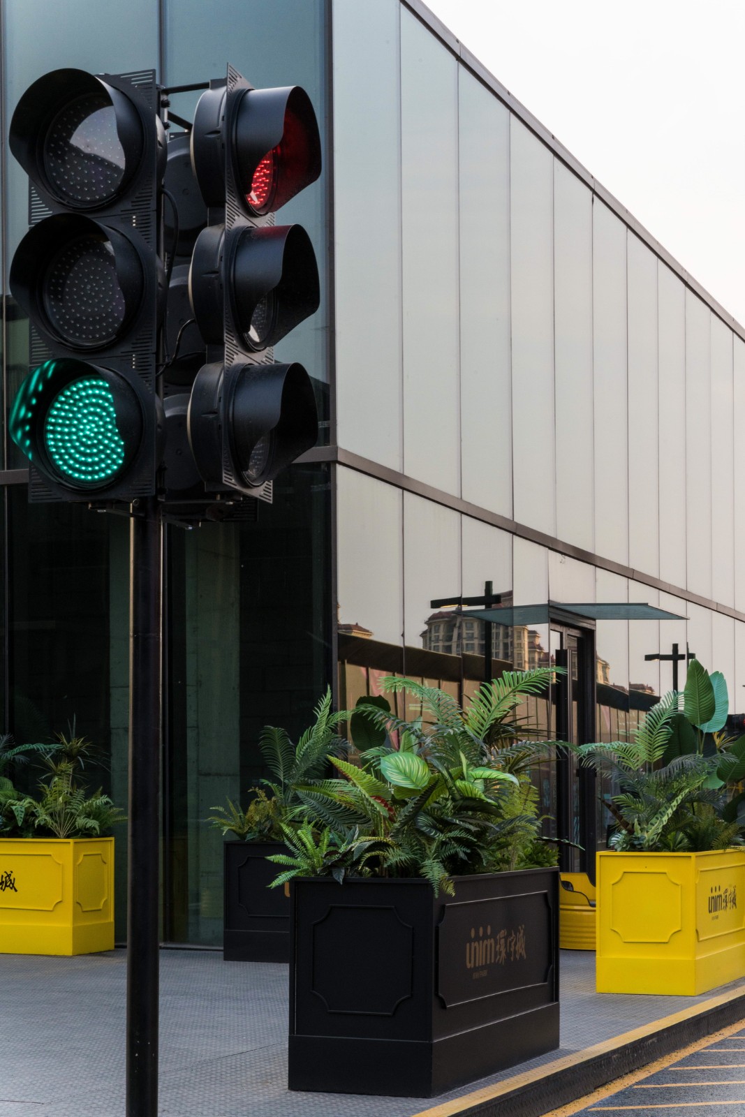为了将商场的人流吸引到屋顶,并且参与到屋顶的各种活动之中,我们构建了一个超现实的空中街道场景,以此吸引人们的目光并弱化屋顶机械设备的存在感。这个街道仿佛一个梦幻般的空间,人行道、路灯、甚至红绿灯和公交车站等元素,都将现实与幻想交织在一起。街道交汇处自然形成了十字路口的街景,人来人往,如果不是在屋顶,这一切都让人仿佛置身于一座小城,尺度舒适,人们也就更加享受散步以及运动本身。