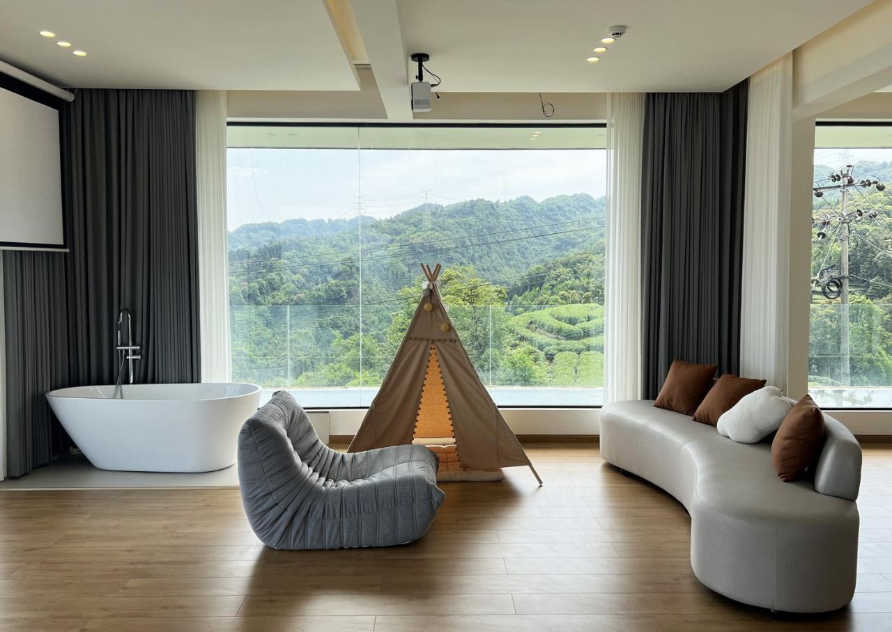 建筑坐落在一片茶园之上,结合建筑功能的需要,我们将建筑尽量做得通透,一层公共区域采用大面积的可开启落地门,可与室外茶园直接相通。在二、三层的客房区域,我们做了层层出挑的阳台,并与客房直接相通。不但让建筑与周边环境相融合入,同时与创造了更好地观景效果。
