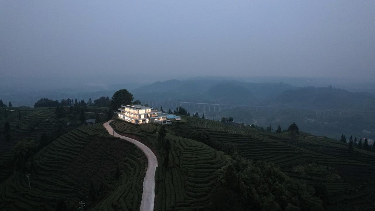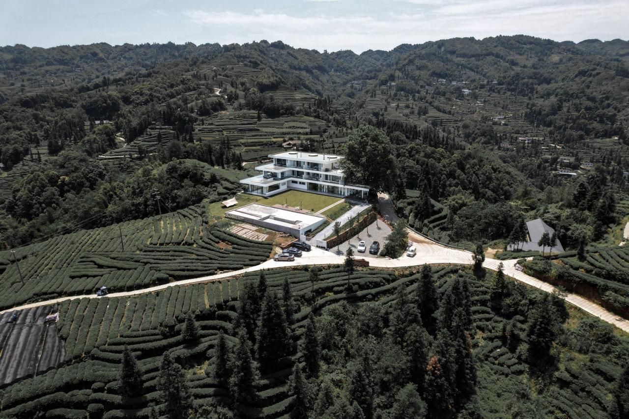 本项目位于四川省雅安市名山区的一座茶山之上,周边自然环境极佳,视野所及均是成片的茶园,不但可以远眺贡嘎雪山,还可以体会茶园云海的独特景观。在这样一个环境中,我们的设计从功能、空间、形态都力求能与周边环境相融合,塑造一个既融于环境又具有独特风格的建筑设计。