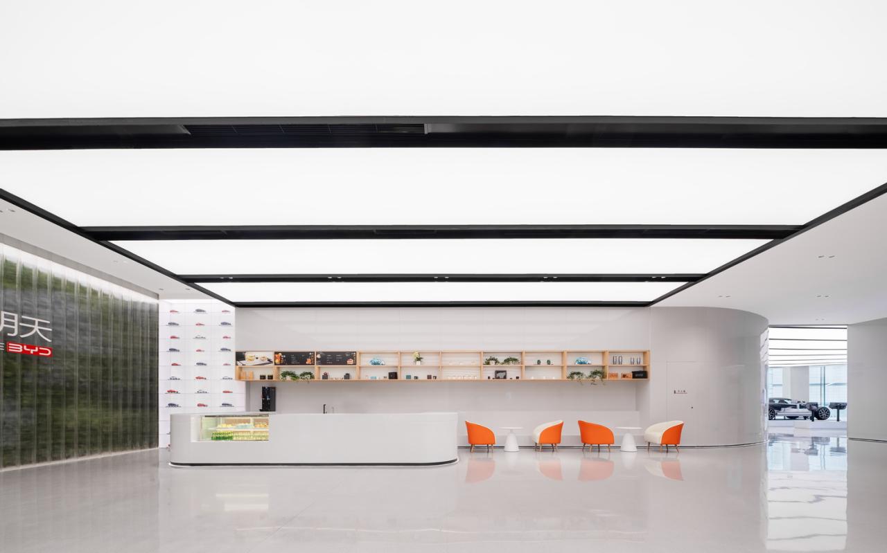 武汉比亚迪品牌体验中心的设计融合地缘特色与品牌文化,完成了从建筑改造及内部空间的一体化高品质设计。江城水脉贯穿设计思考,曲线形态让人感受到动感,并将科技感与简洁现代的设计理念结合,构成了比亚迪与武汉这座城市的人文纽带。