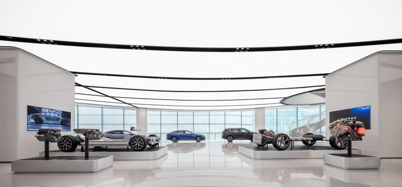 武汉比亚迪品牌体验中心由武汉国际会展中心改造,我们考虑因地制宜,融入城市独有的气质,品牌高端的调性,汇聚比亚迪技术、品牌及全矩阵车型,打造融合科技体验、文化艺术及品质生活为一体的新能源汽车文化新地标。
