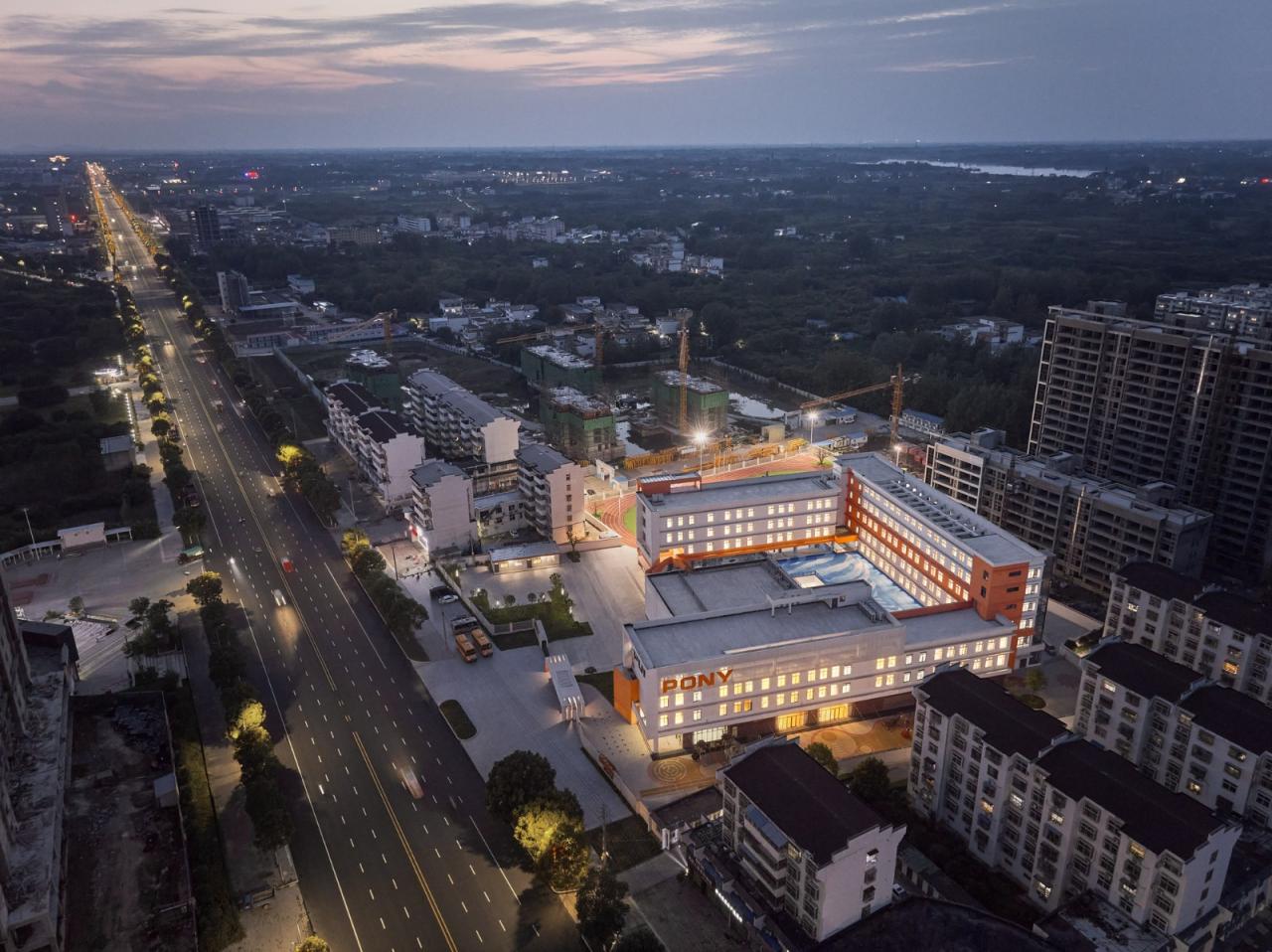 我们改造了一所尚未完工的小学。作为县域单元普遍发生的高强度住宅开发的缩影,这所位于河南信阳潢川县的学校被高层居住小区环绕,用地极其紧凑。走进其中,使人仿佛回到了大城市的高楼林立中,浑然忘却了甚至只是一两公里以外的辽阔田野。
