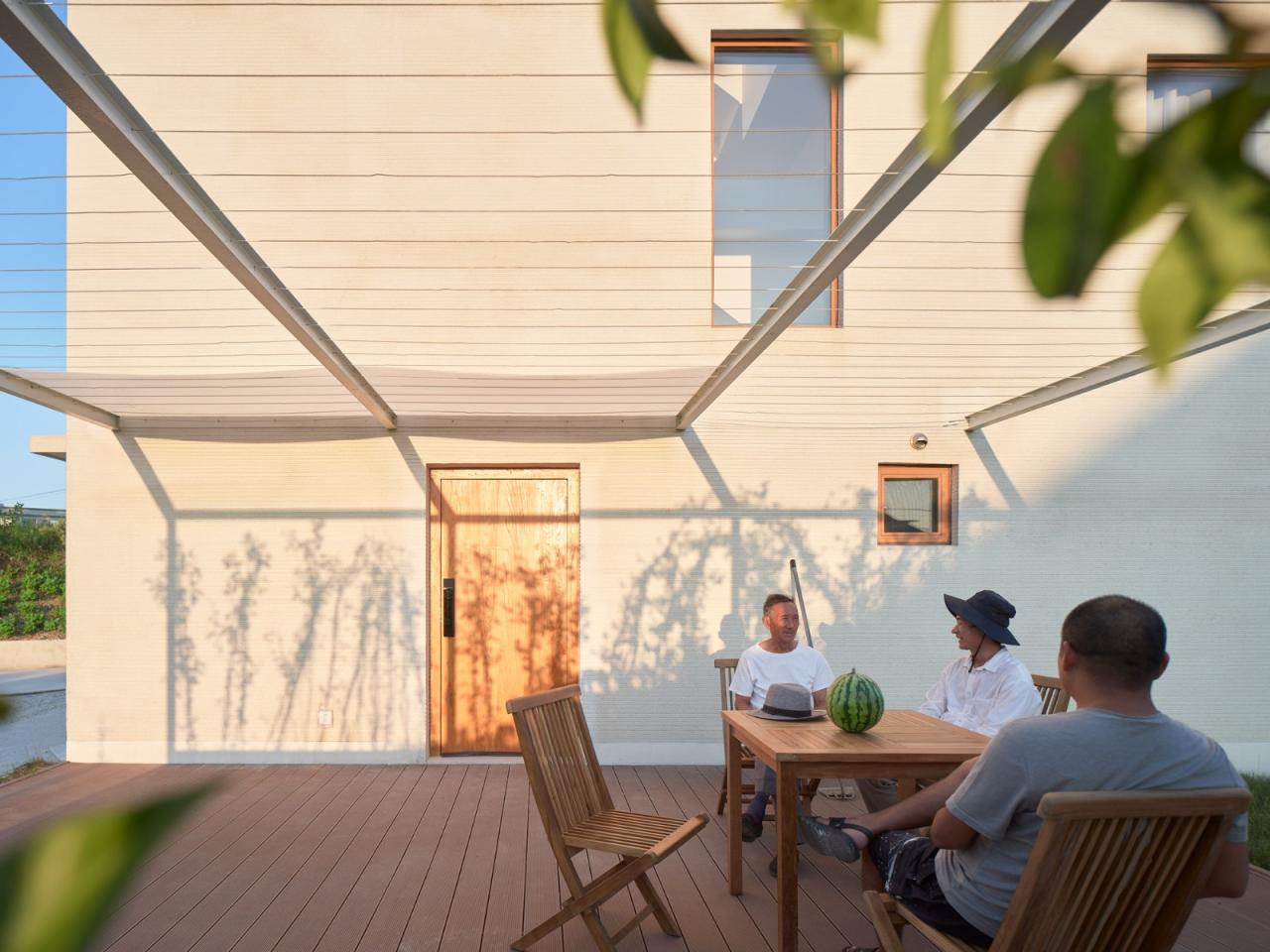 失去附属小平房之后的彭宅在气质上变得清冷,最终我们不得不接受了这座略显孤傲的房子。原先准备作为麻将室的附属平房以葡萄架的形式延续,彭老先生依然可以和邻居们在此打麻将,除了失去屋顶和围护,一切一如从前。这仿佛是对于彭先生一家“归园田居”的隐喻,这一个上下左右都由剖面拼合而成的建筑,是某种变化中的城乡异质混合的结果,尽管它看起来与老屋似曾相识,但又已经完全不同。