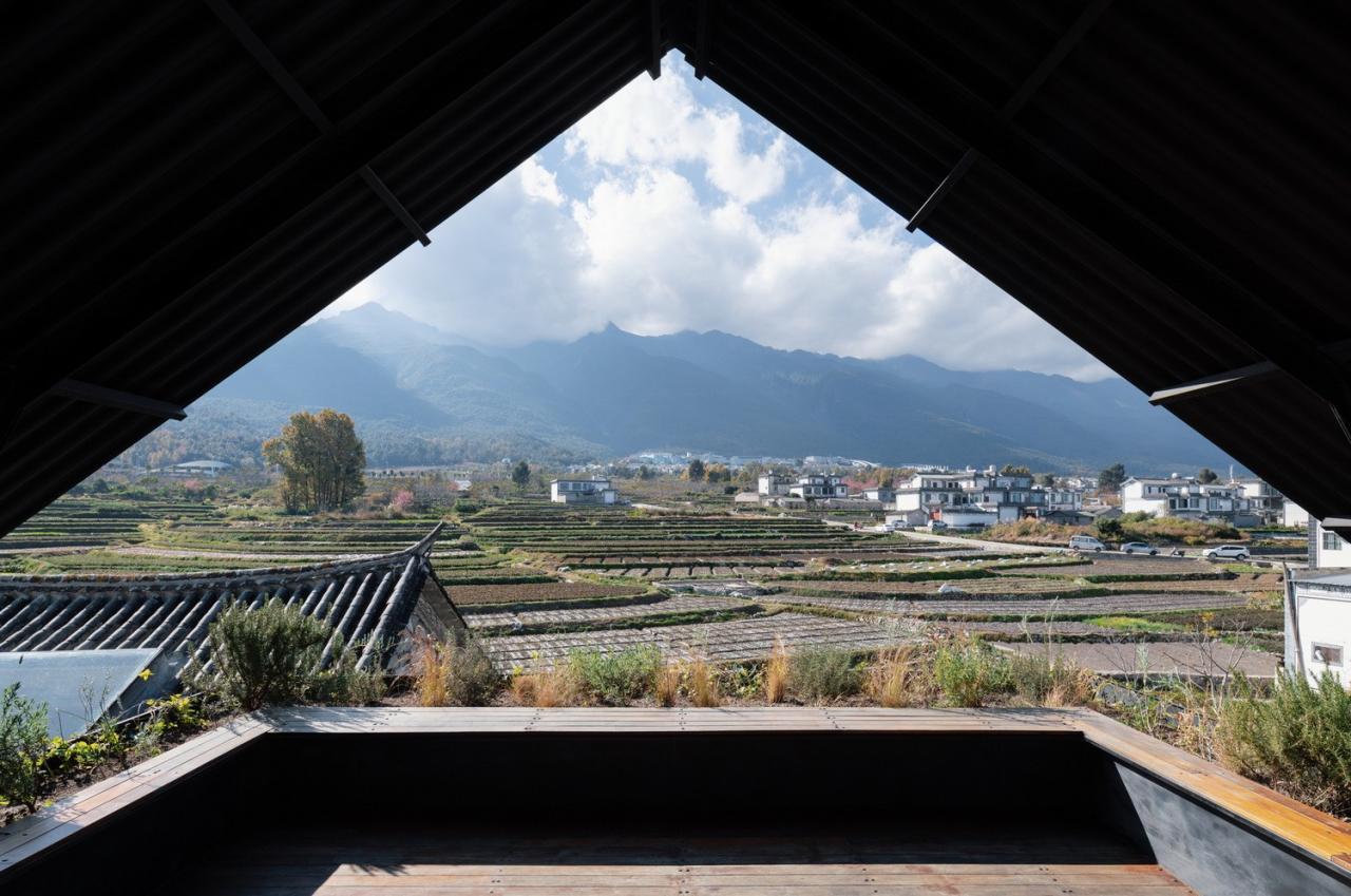 山海与废墟在大理长居的人都能切身体会到,古人选择在海西的坝子上建都生活是有道理的。跟海东“大理福尼亚”式的极致度假感相比,苍山下宽阔的海西坝子是“养人”的。位居横断山脉南末端的苍山十九峰以横断山脉最典型的南北走势一字排开,苍山十八溪自西向东平行而下滋润着整个海西坝子,滋养了丰茂的植被和生机勃勃的农业文明,最终汇入洱海。海西大大小小的村庄就散布在这坝子的良田之间。对于海西坝子上的传统民居而言,坐西朝东、背山面水的“山海关系”是第一位的,这既符合接纳上午阳光避开下午西晒的基本舒适度,也能有效抵挡冬季来自西南方向猛烈的“下关风”,而围绕内院展开的内向型空间布局也进一步过滤了高原四季中时常带有伤害性的风和阳光,形成了围绕院子展开的、受庇护的传统自然生活方式。墟岫园坐落在海西坝子上苍山脚下的田边,位于村子的西南角,倚田望山。墟岫园是我们为自己建造的新工作室,也是对亲近自然的工作和生活方式的一次探索。